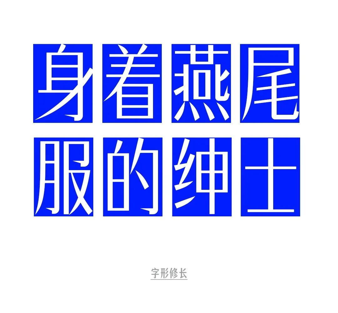整体比例拉长,字形看上去挺拔、俊秀、优雅,尤其是细体,更加清雅悦目,高级感立现。如果说传统宋体是一位身姿曼妙的柔美女子,那么这款艺术宋体字硬朗的气息便如身着燕尾服的绅士。