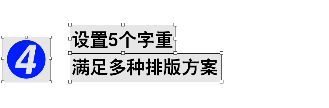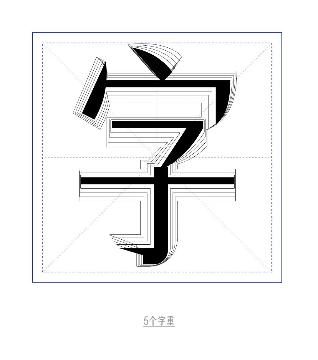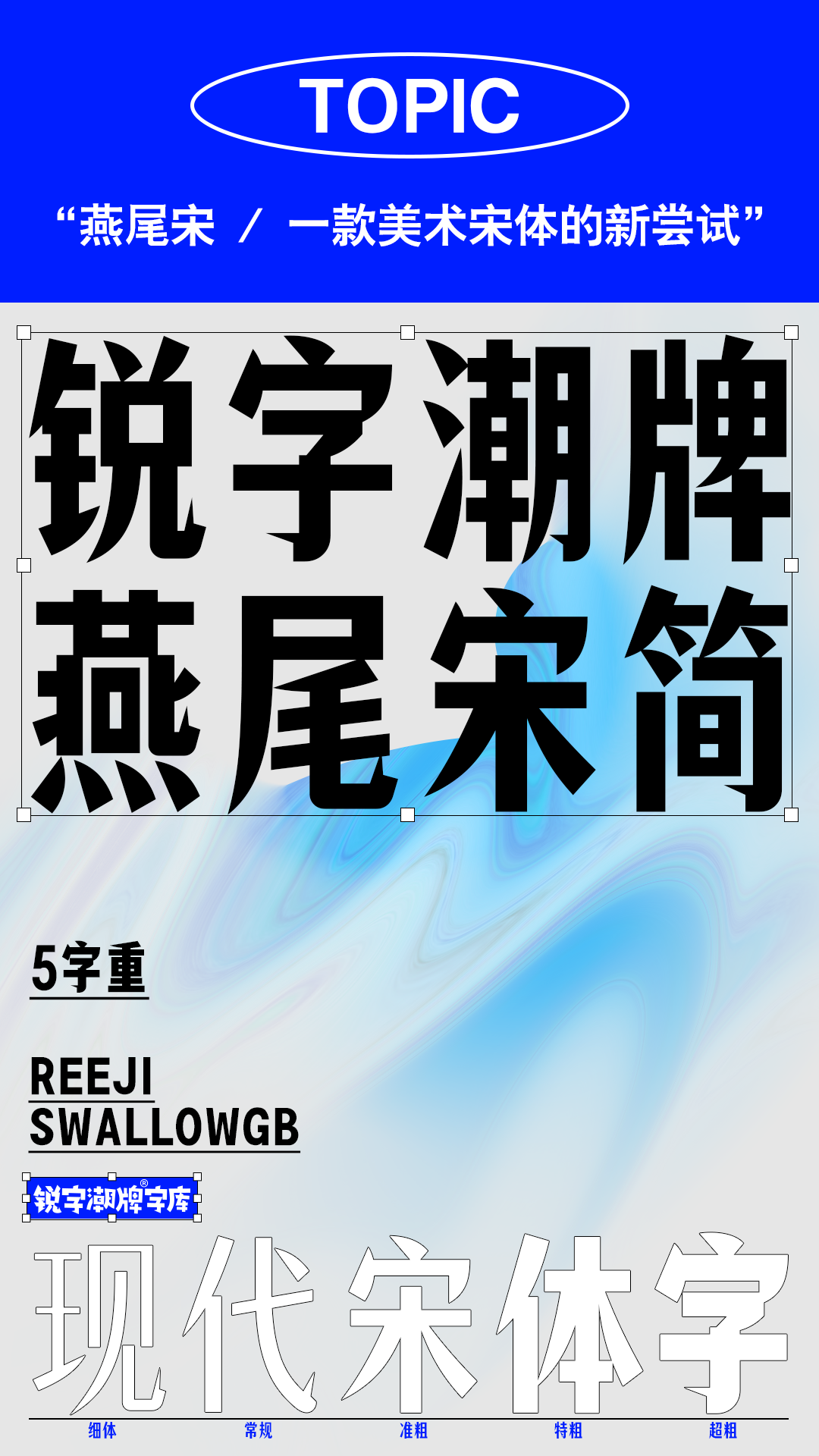 燕尾宋缩小横竖粗细的比例差距,视觉上横竖笔画粗细接近,具有类似黑体的远视距效果,同时设置了5个字重。