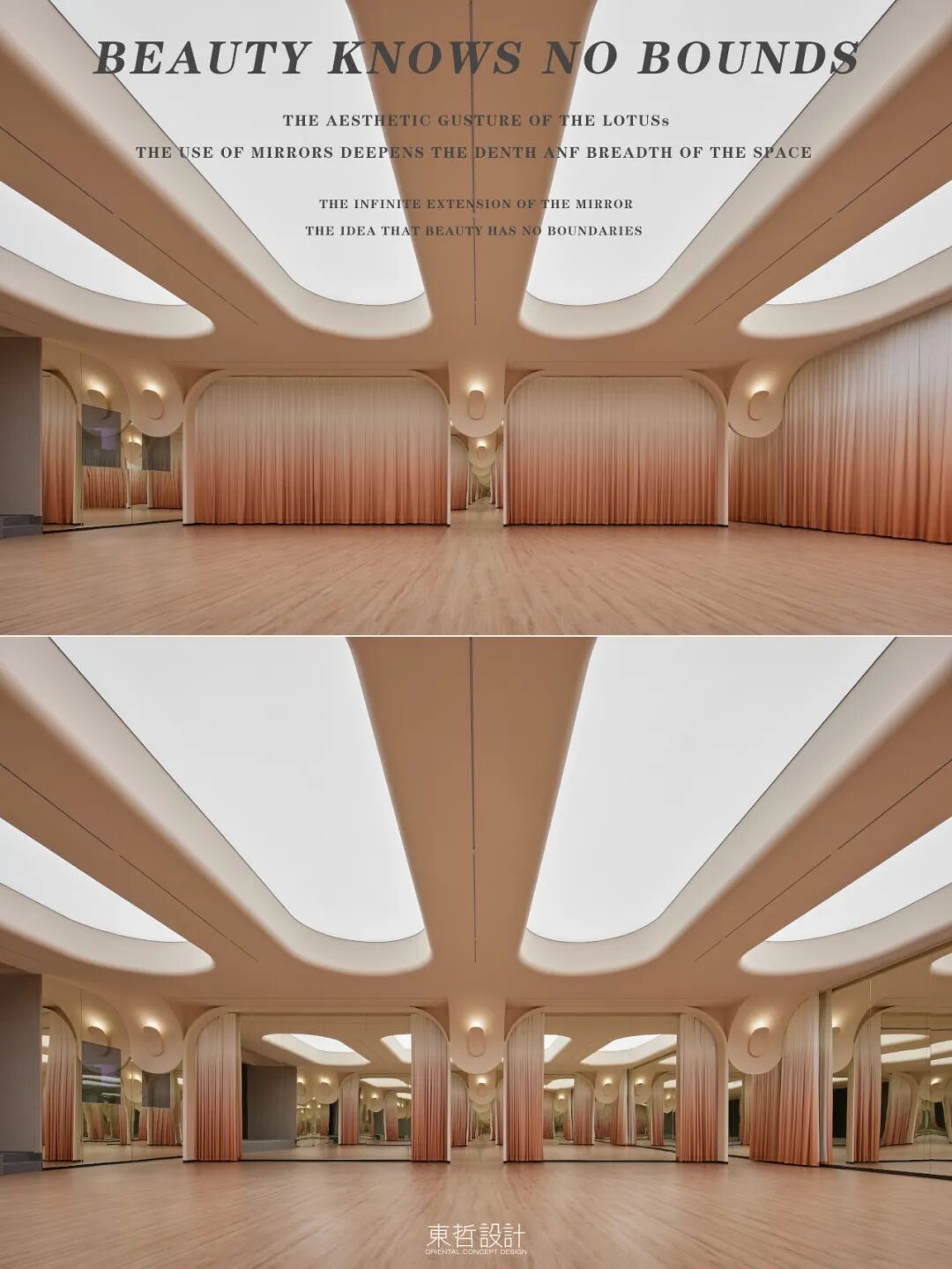 镜面的运用加深了空间的纵深广度,同时镜面的无限延伸,也蕴含了美无边界的理念。
