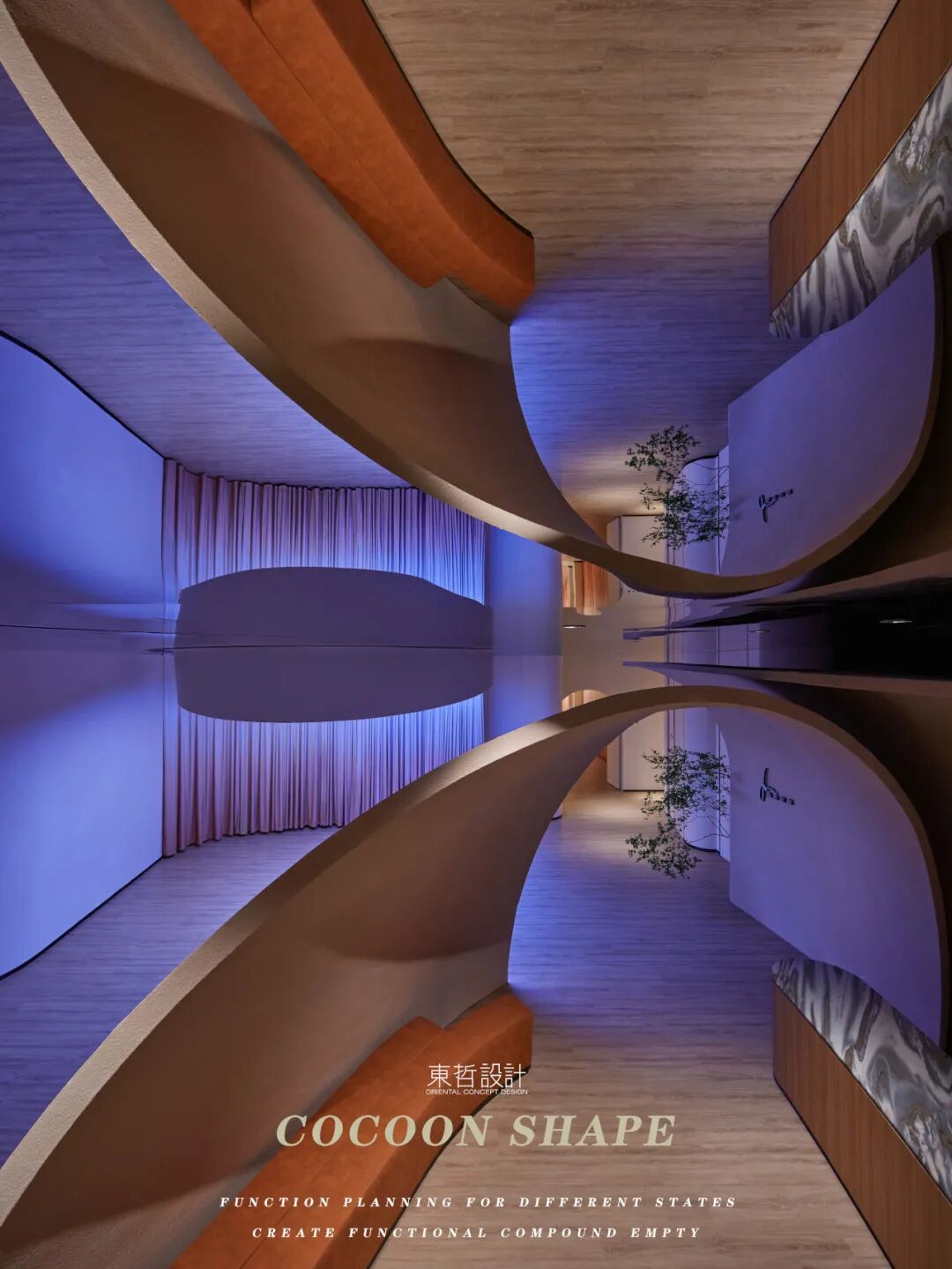 以蚕茧为题,通过其蜕变的过程阶段演化,以艺术化的设计手法赋予其抽象化的空间形态。