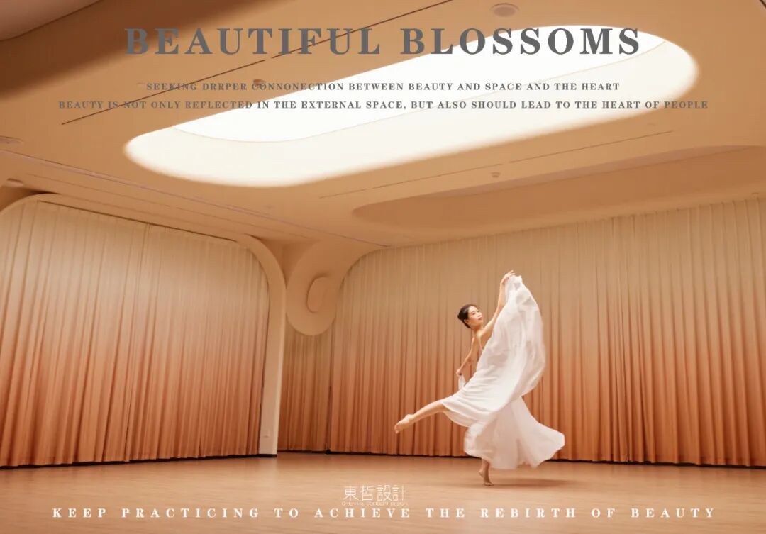 “绽放”部分囊括了美习社和美学社,空间上提取了莲花的美学姿态,根据其演化配合色彩变化,塑造具有张力的“绽放”空间形态。