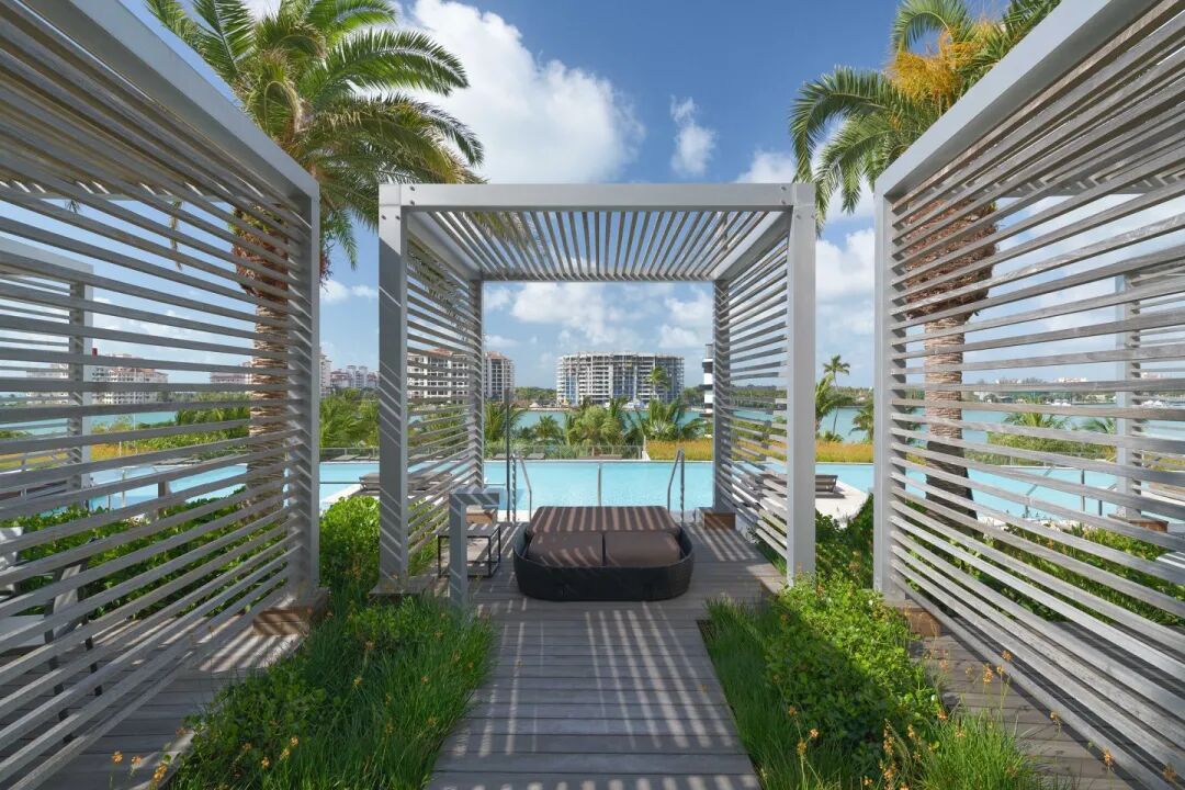 在视野极佳的阳台上远眺,可以看到迈阿密海滩的美景,同时将改造后的泳池花园尽收眼底。
