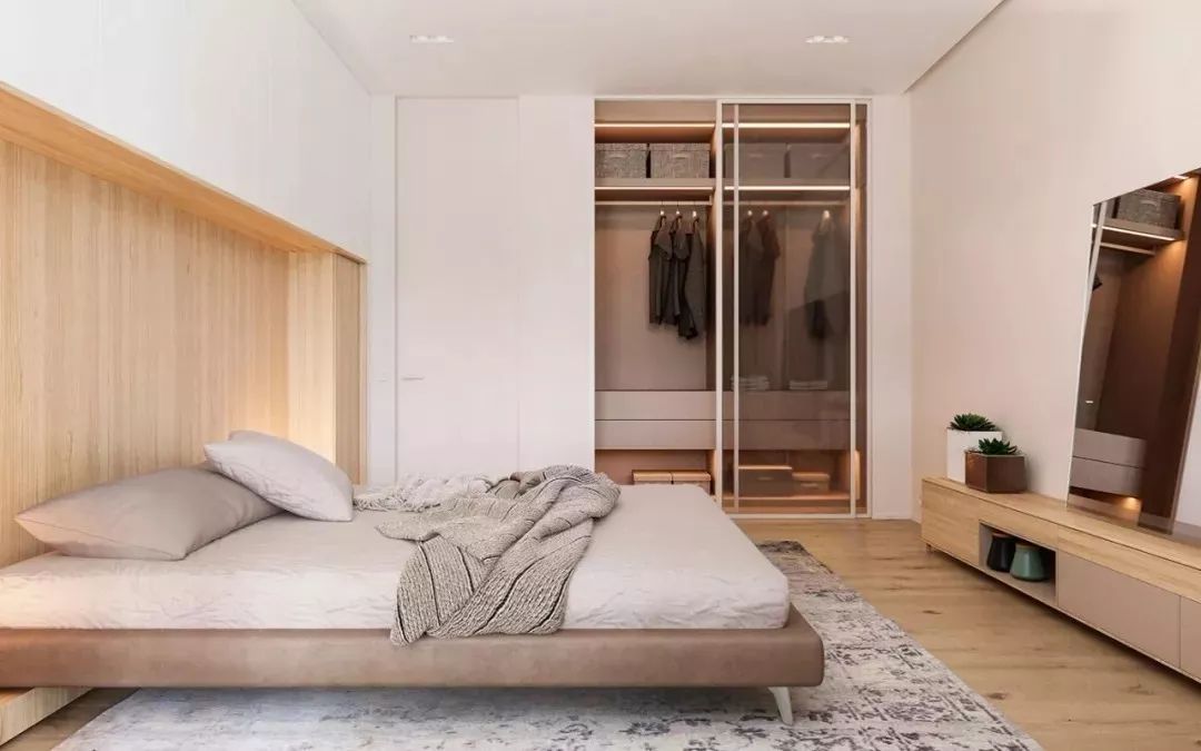 2、入墙式衣柜的外表可以根据室内整体的装修风格、颜色进行量身定做,与整个房间的装修效果混为一体,例如衣柜门颜色要与地板或者床的颜色相呼应。