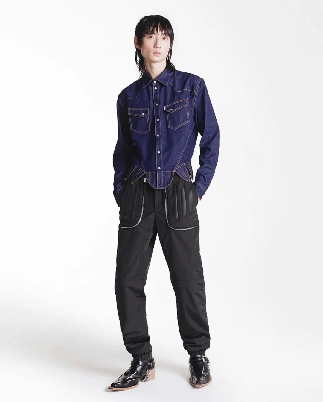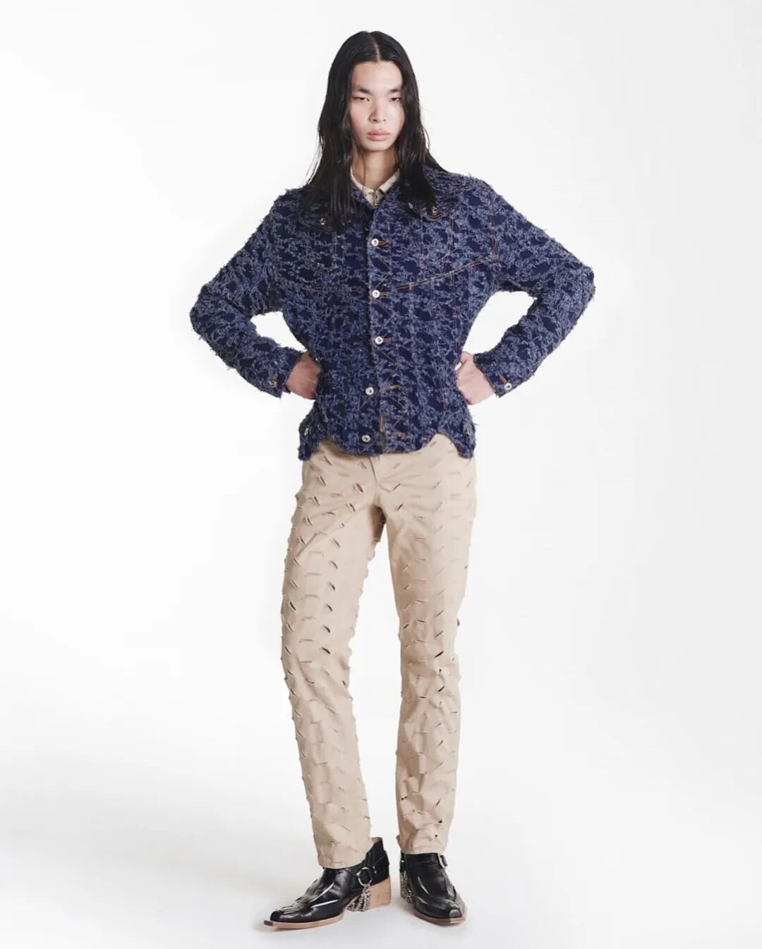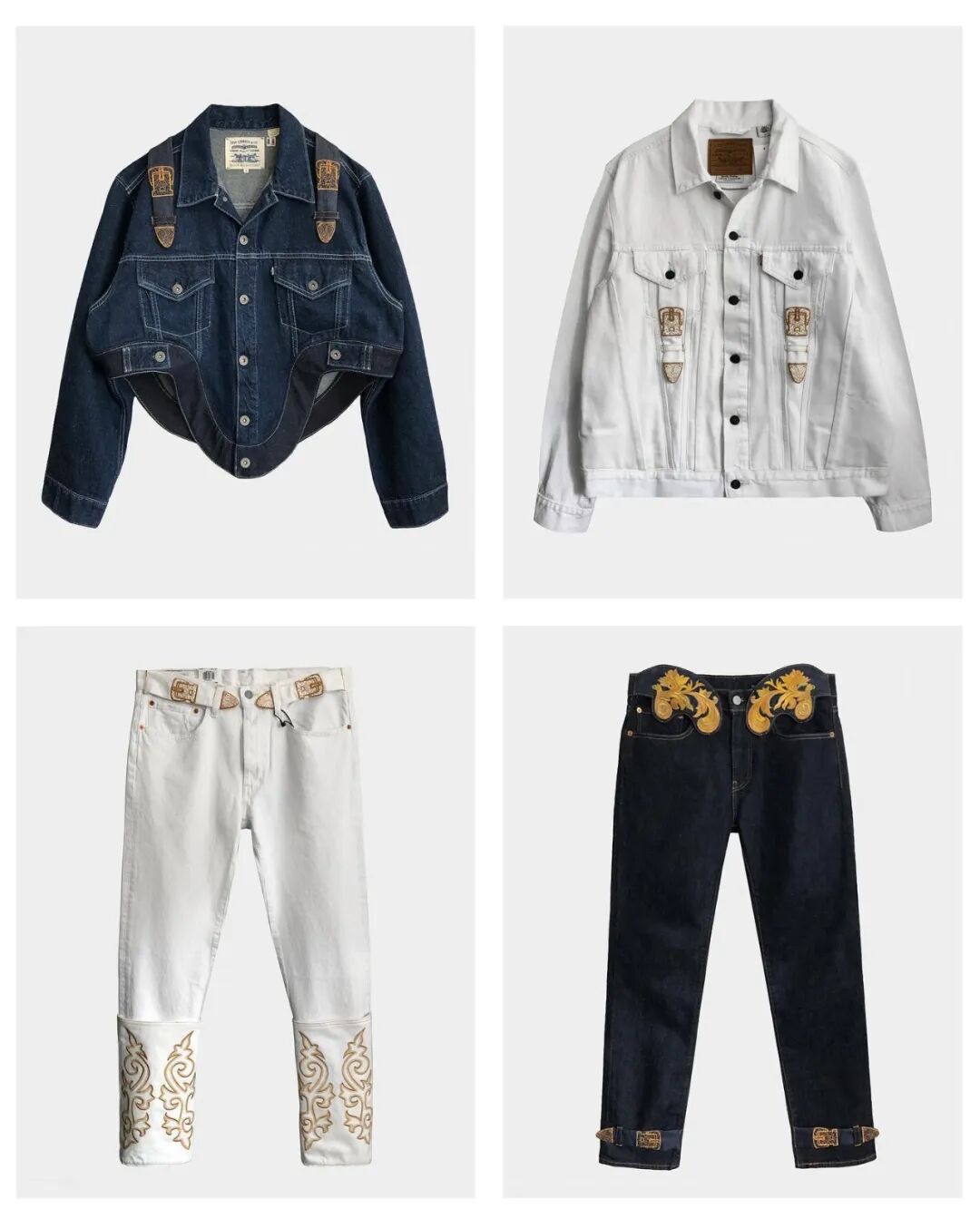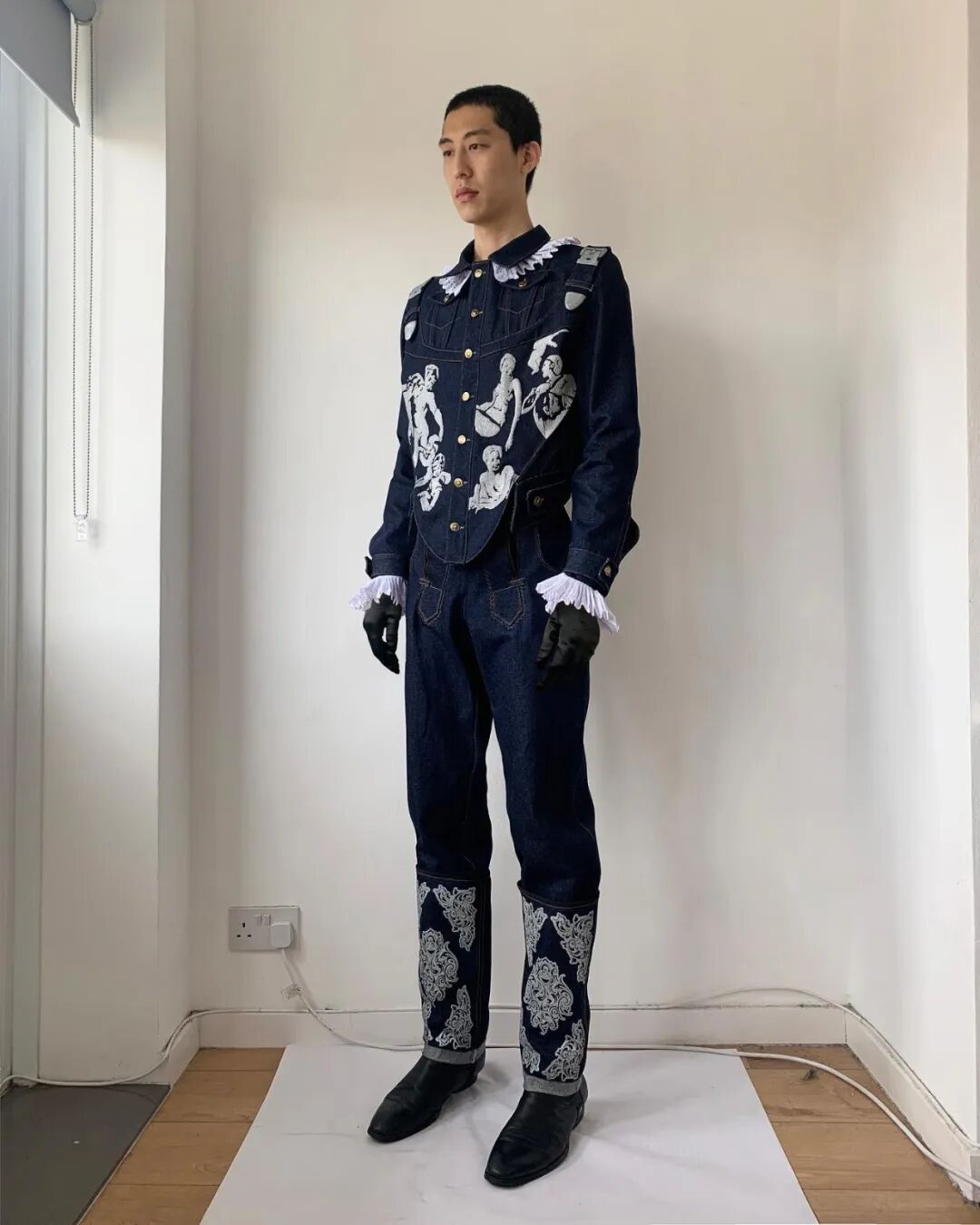 Juntae Kim最初在时尚界崭露头角,是在他中央圣马丁与Levi’s®️的合作系列中。他从洛可可与巴洛克时期的历史服饰与艺术品中获取灵感,将其运用到标志性的501牛仔裤中,重新构想与设计了这个牛仔品牌。