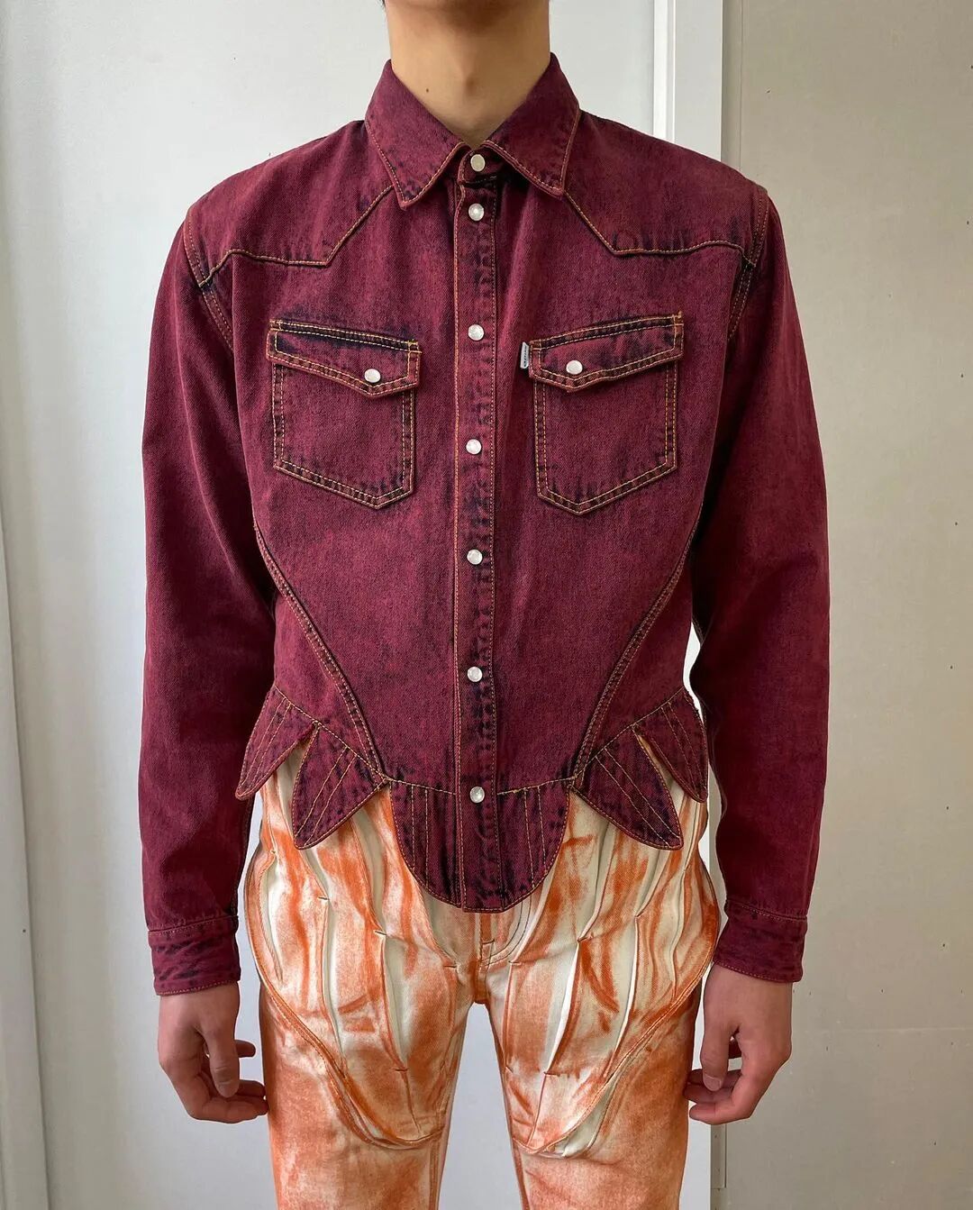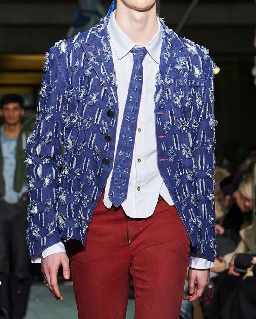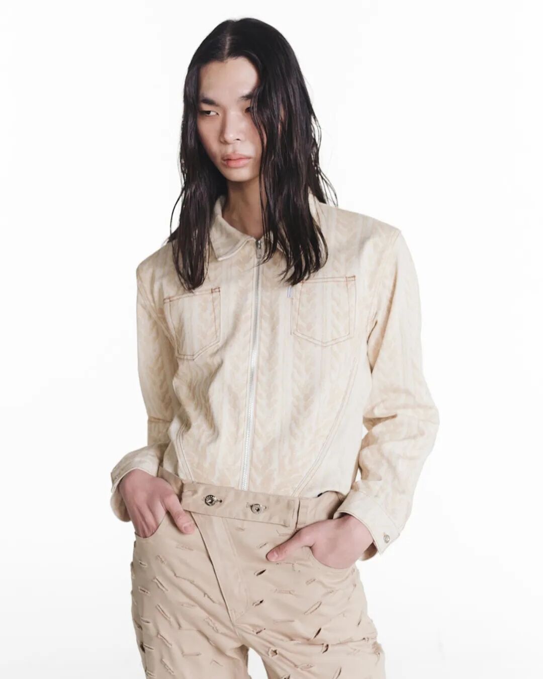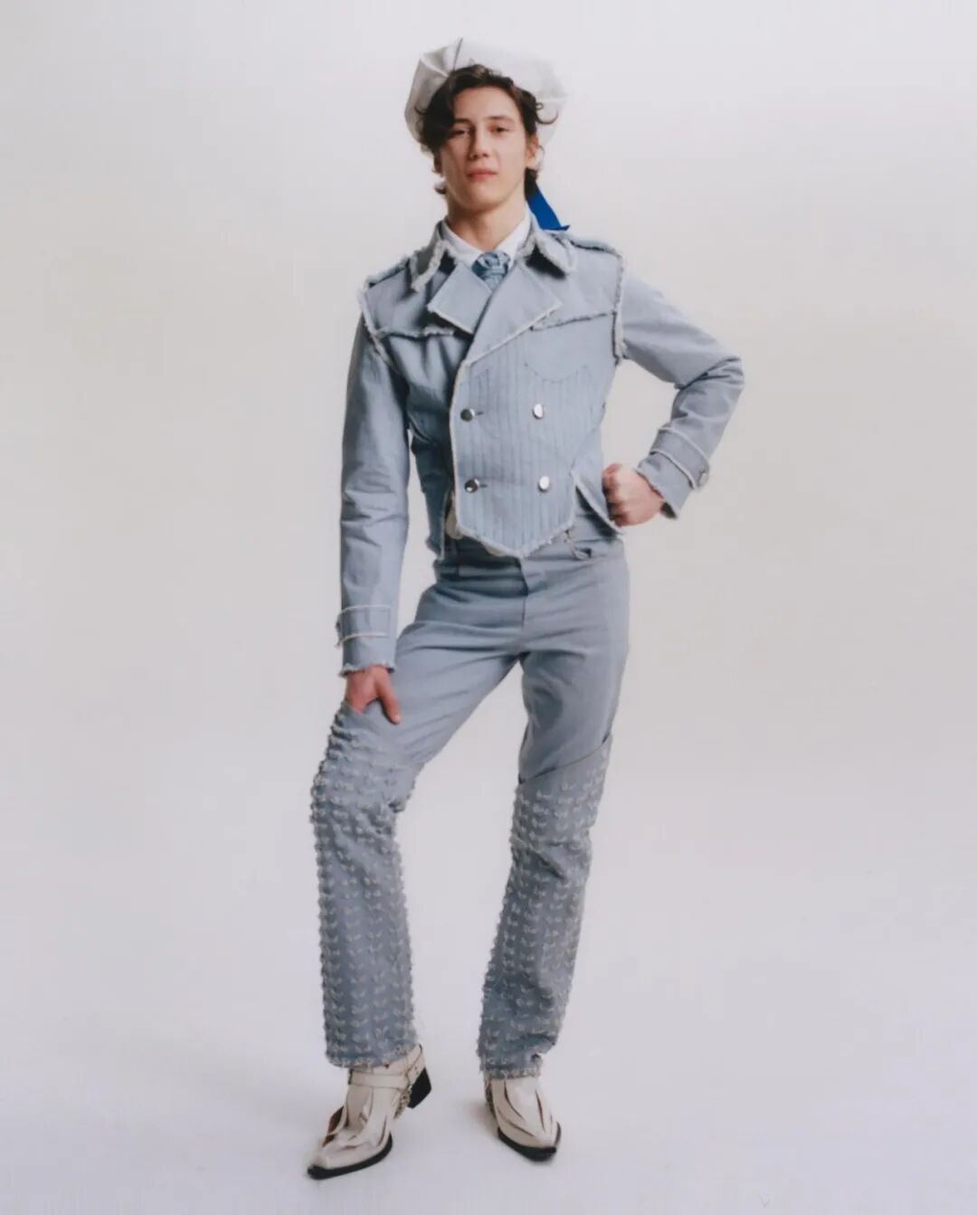 Juntae Kim最初在时尚界崭露头角,是在他中央圣马丁与Levi’s®️的合作系列中。他从洛可可与巴洛克时期的历史服饰与艺术品中获取灵感,将其运用到标志性的501牛仔裤中,重新构想与设计了这个牛仔品牌。