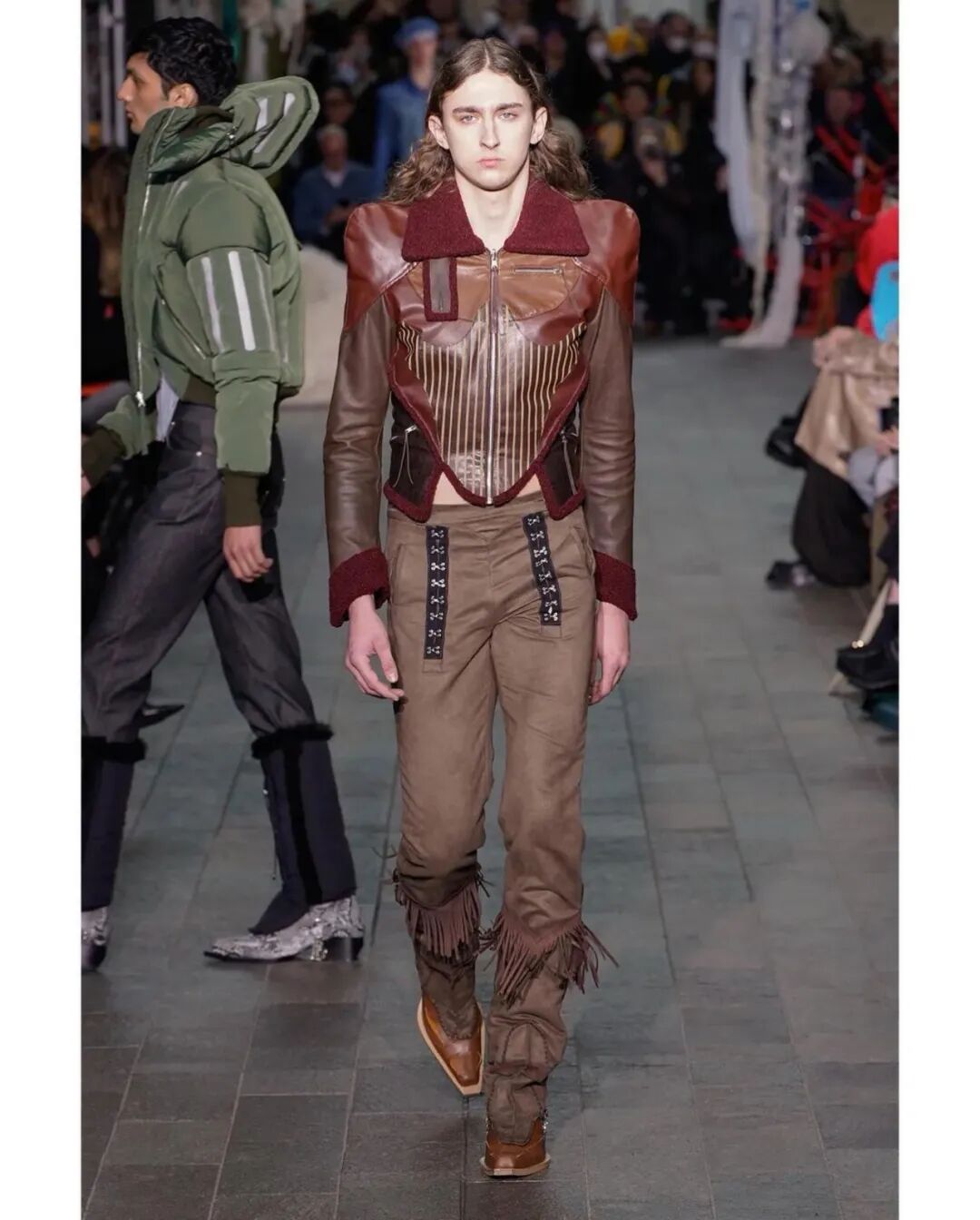 JUNTAE KIM的FW22是一首颠覆传统标准的颂歌。在17世纪至18世纪限制性单品:紧身胸衣、紧身上衣、背心、皮短裤等中,Juntae Kim以创新的方式将历史服装重新诠释为更具舒适度的时装。