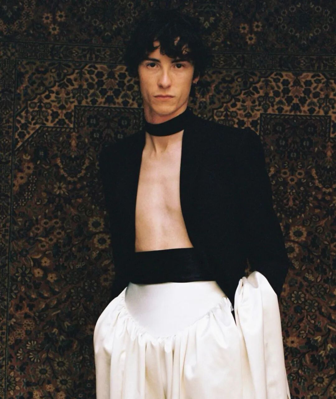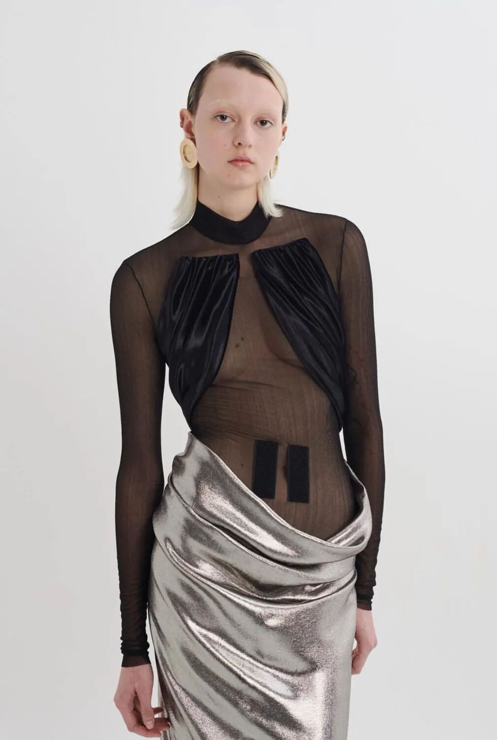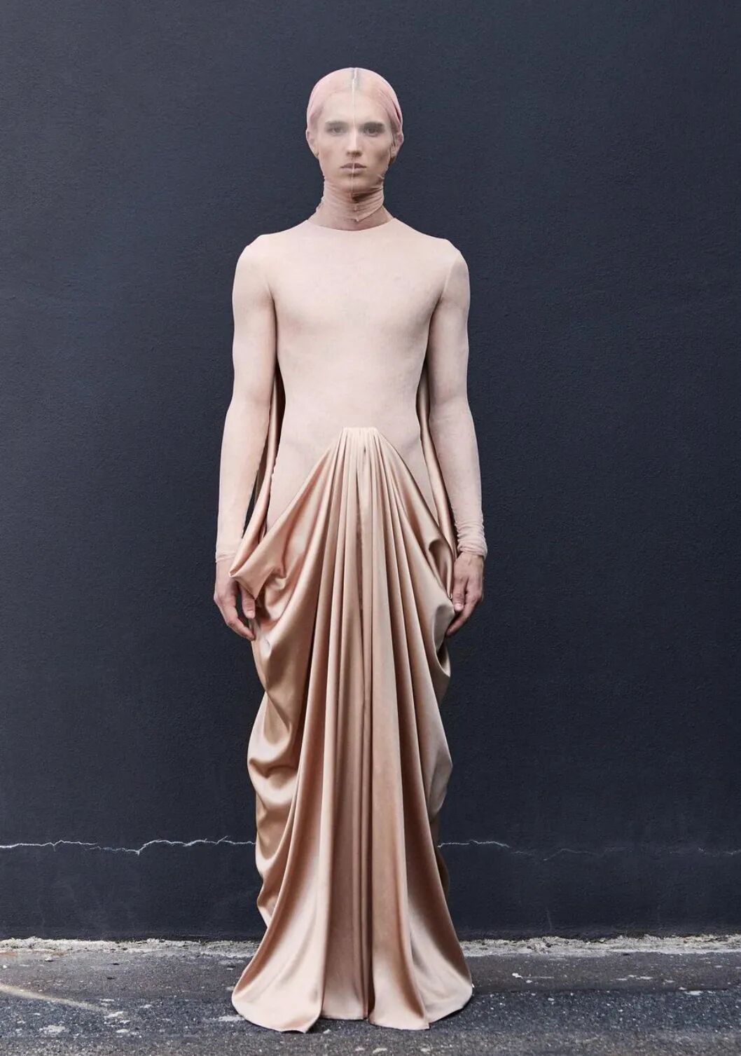 专注于性别流动设计和未来主义剪裁,他的金色衬裙搭配抹胸设计是半决赛中最受关注的作品之一。