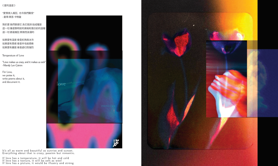 看过Marina和Ulay的行为艺术,感受两位艺术家对爱情微妙与复杂的描述。看过Tom Ford导演的一部电影《A Single Man》,通过色彩的变化表达主角失去爱人后的心理变化。看过Mandy Lan Catron的Talk,其中一句 “Love makes us crazy, and it makes us sick”,激发了我探索爱情心理的欲望。