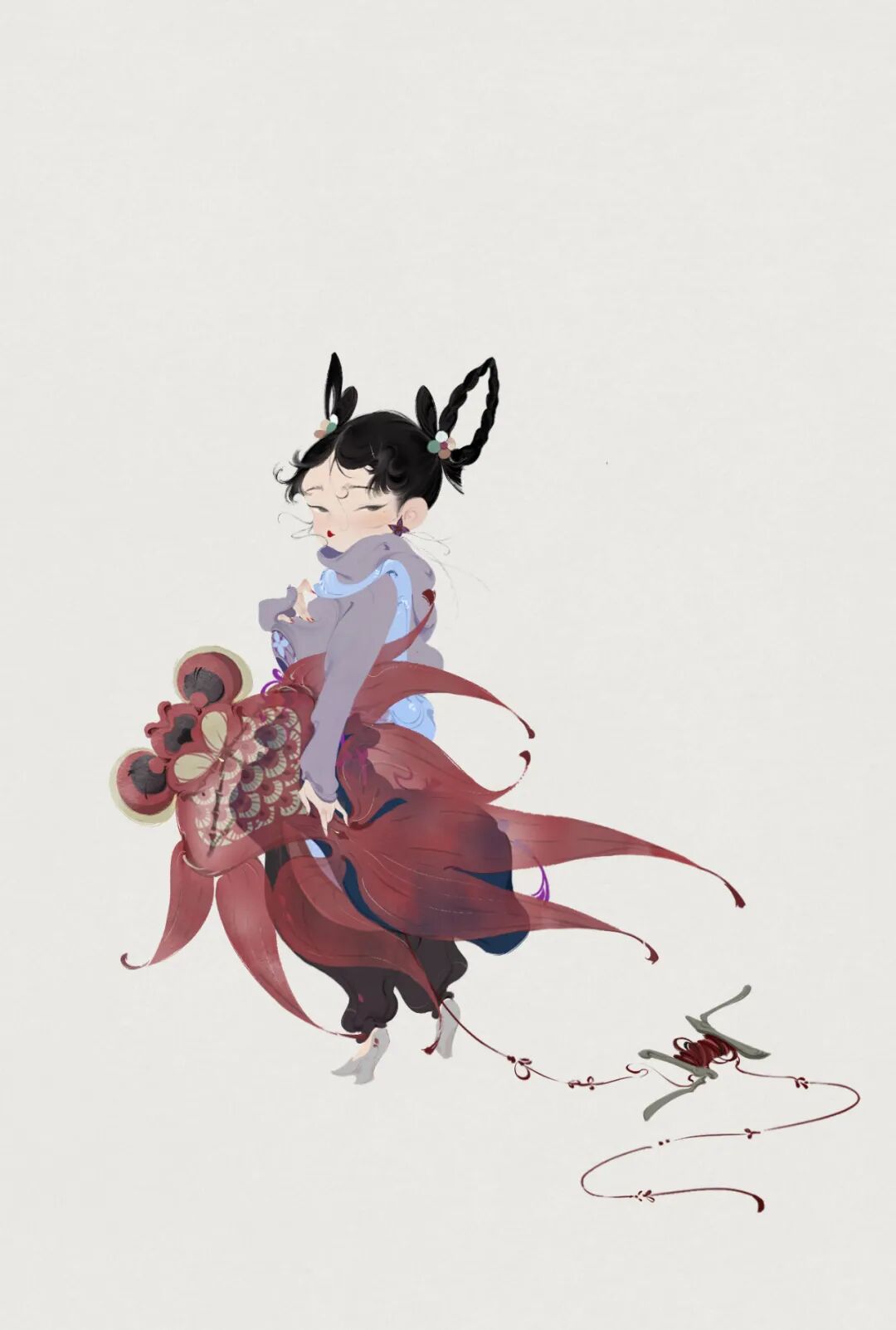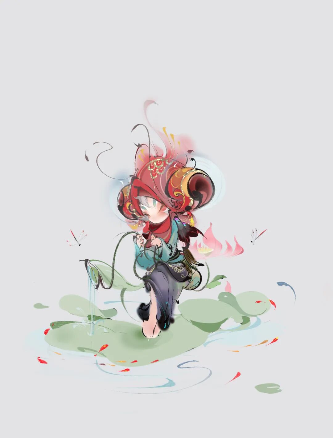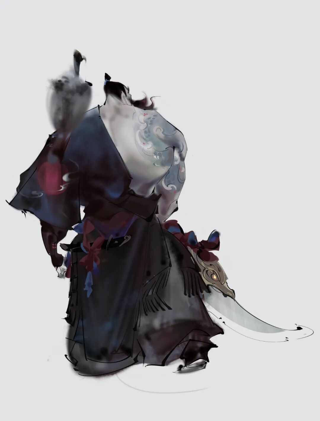 刘啾啾:我自己本身很喜欢东方的艺术表达,个人审美倾向也是偏于此类。有很多类似的前辈作品吸引我去学习,如:戴敦邦,陈玉先,中岛洁,天野喜孝等。真要究其原因,我想一方面是工作上多以古风为主,长久历练自然有了些见解。另一方面,我喜欢琢磨作品的“味道”。我认为好的作品是具有透明性且可以交流的,透过作品是可以感受到着力量,是劲,是坚毅,是稚气,是傲骨...每每看见好的作品,我会享乐其中,读多了也被这股力量牵着走了。