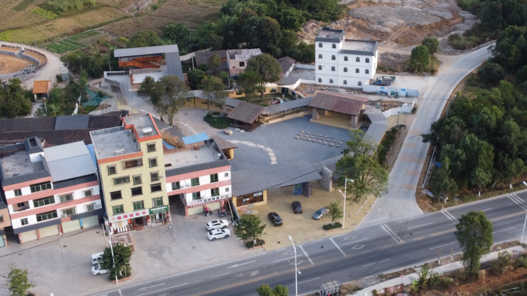 瑶客共生广场位于广东省韶关市乳源瑶族自治县乳桂经济走廊游溪镇。乳桂经济走廊是乳源瑶族自治县的经济动脉,同时也是当地旅游的重要风景廊道,走廊串联乳城、一六、游溪、桂头四镇。广场毗邻瑶族迁移新村和客家村,是乳桂绿道的重要驿站节点,为游客提供休憩游览的空间同时为周边乡镇提供公共服务配套。