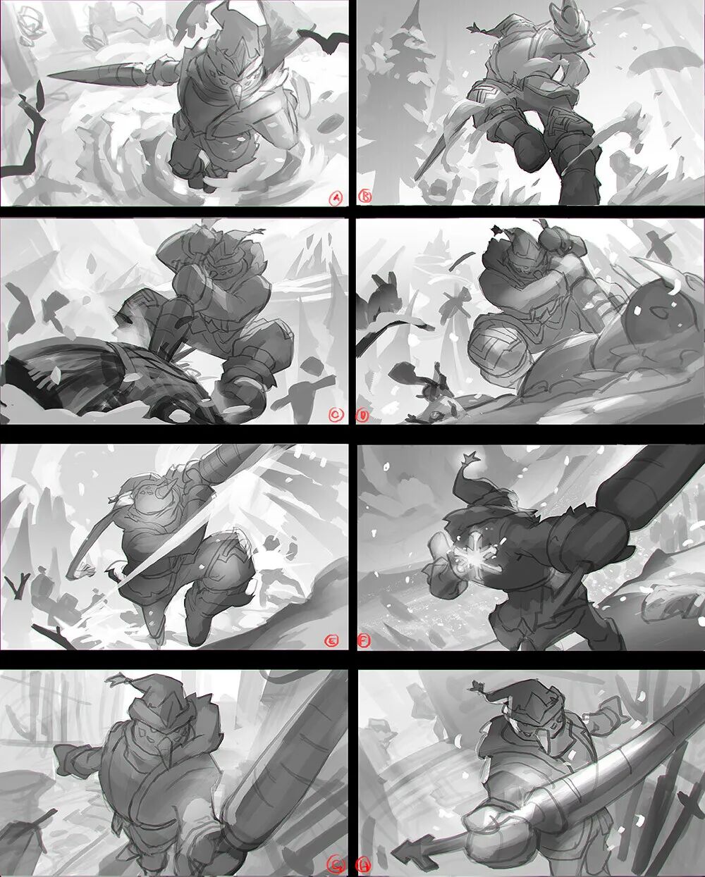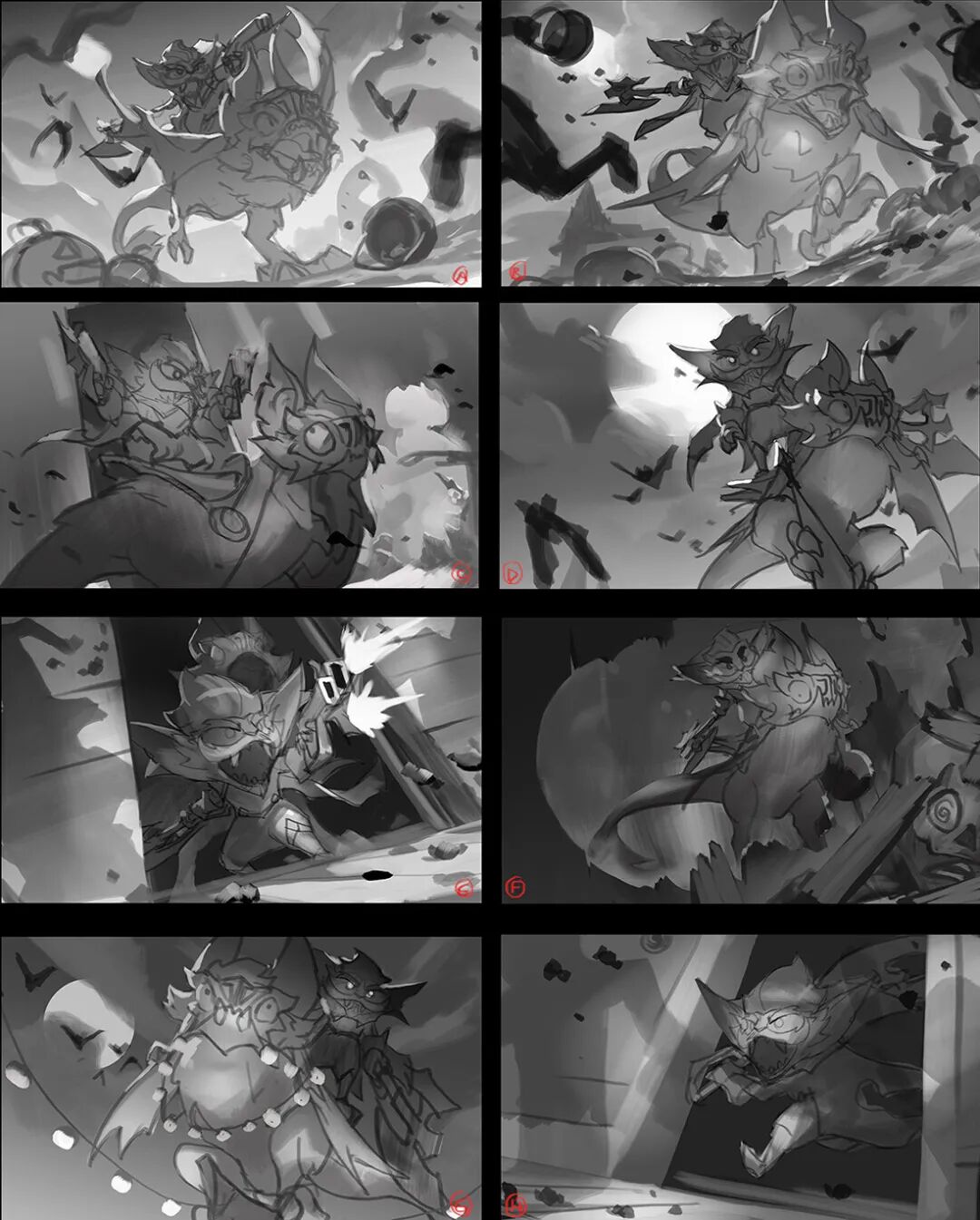 其绘画功底扎实,参与过LOL的美宣图制作,无论是构图、设计还是形体都非常准确到位,展现出了专业的素养。