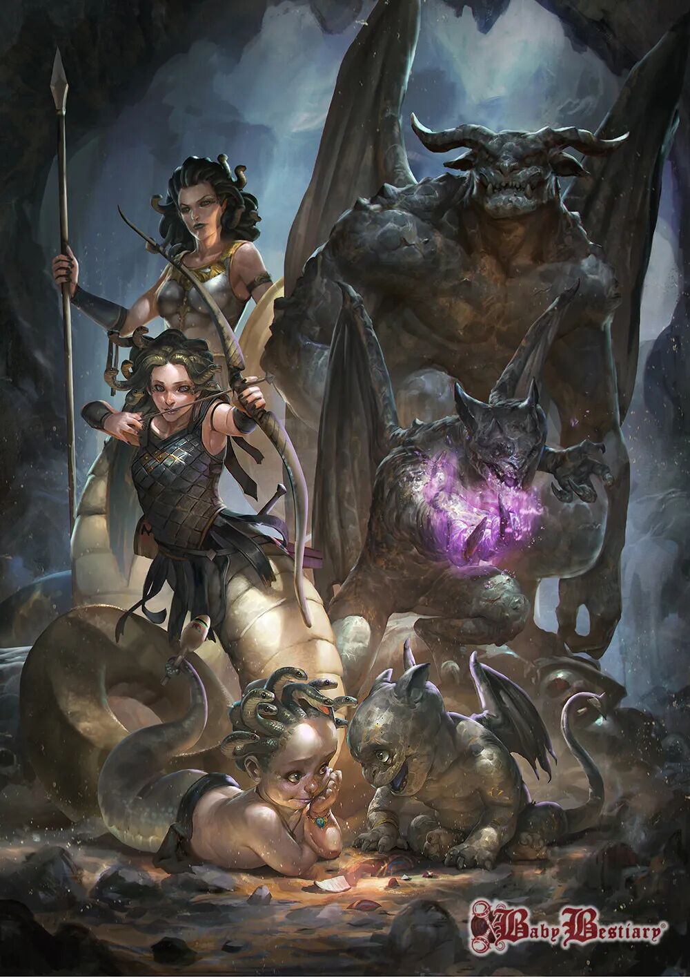 作品中有羊蹄的小哥萨提尔,满头蛇发的前美女美杜莎,每9年要吃上7个少男少女的米诺陶,被赫拉克勒斯砍掉一个头再长一个生生不息的九头蛇怪许德拉,北海巨兽克拉肯,石像鬼,蜥蜴人、鸡蛇、马鹫、西牟鸟、噩梦、蕈人……,每一个形象其实都是他想象力的大爆发。
