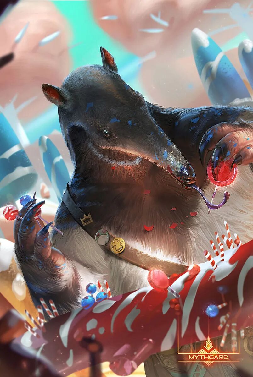 例如他画得较多的充满奇幻色彩的Q版怪物类: 头身比不超过4,圆润丰满的设计,合理夸张化的五官,明度较高的用色。