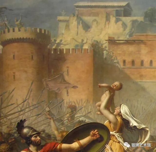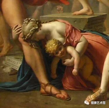 为了不使自己的亲人们在战争中继续牺牲,萨宾妇女抱着幼子走上战场,阻止双方的厮杀。