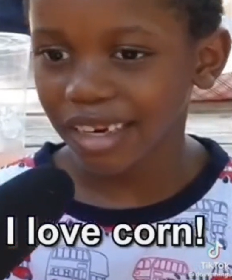 #ITS CORN(玉米之歌)起源于频道@recesstherapy对一个小男孩的采访片段,Tik Tok博主@schmoyoho混音将采访变成了一首歌。部分歌词大意“它很多汁。我无法想象比这更美好的事情了。”大家觉得这首歌中小男孩对玉米朴实的赞美之情可以治愈一切烦恼。