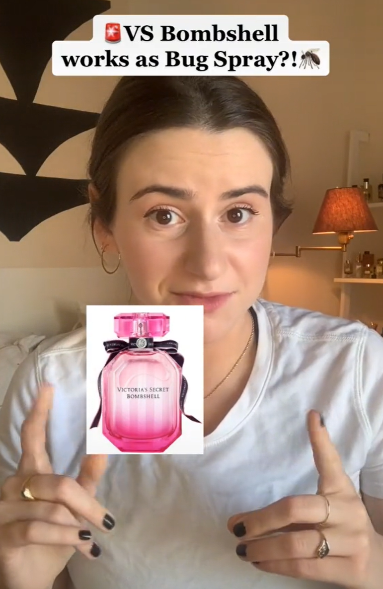 #victoriasecretbombshell是品牌维多利亚的秘密的一款花果香香水,不过现在在Tik Tok上,不少人把这价值60美元的香水当成驱蚊水来用,称这种香水比一般驱蚊水效果更好。