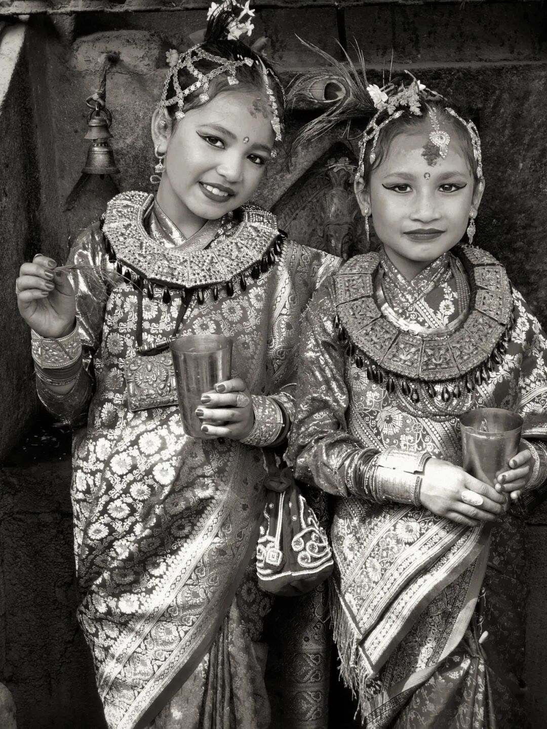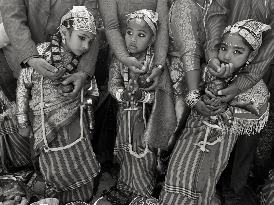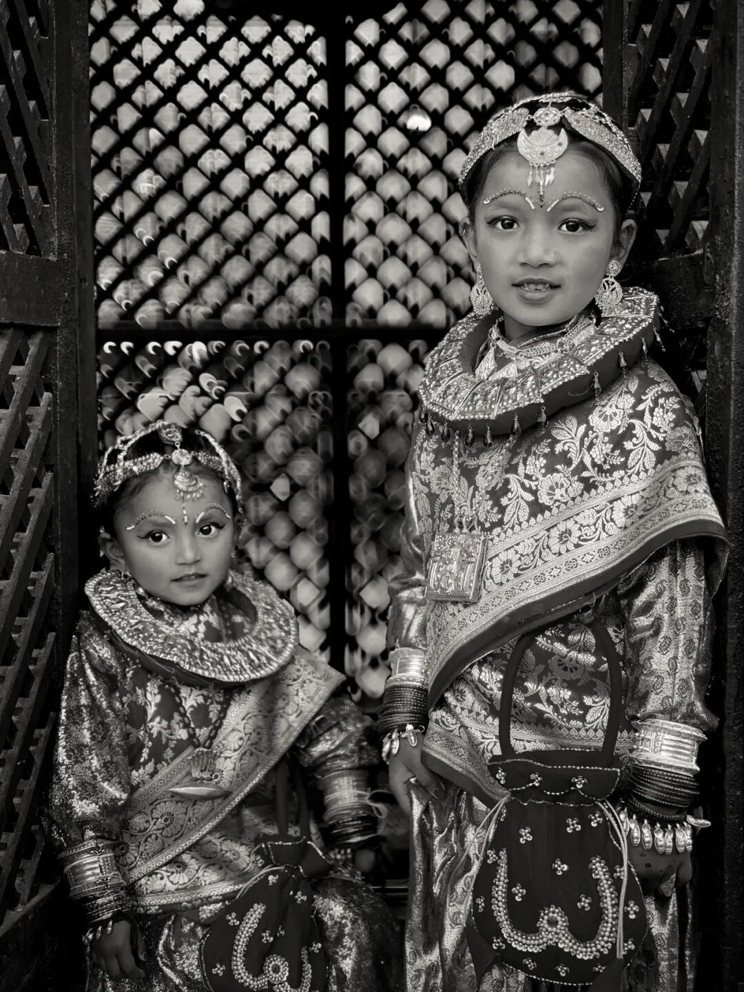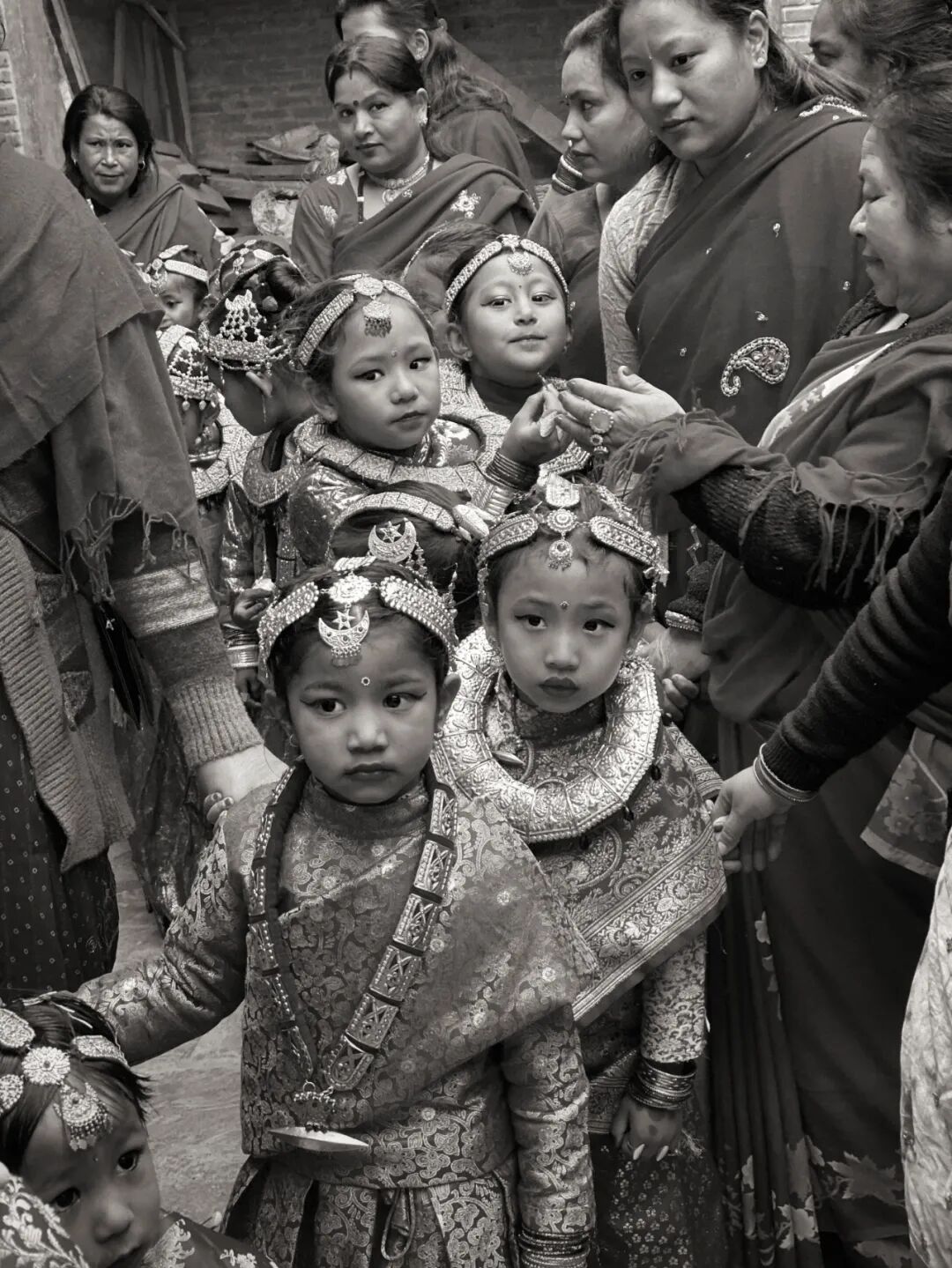 这两位尼瓦尔族小姑娘,没有参加集体的“贝尔果婚礼”,而是在自己家里操办同样的婚礼。