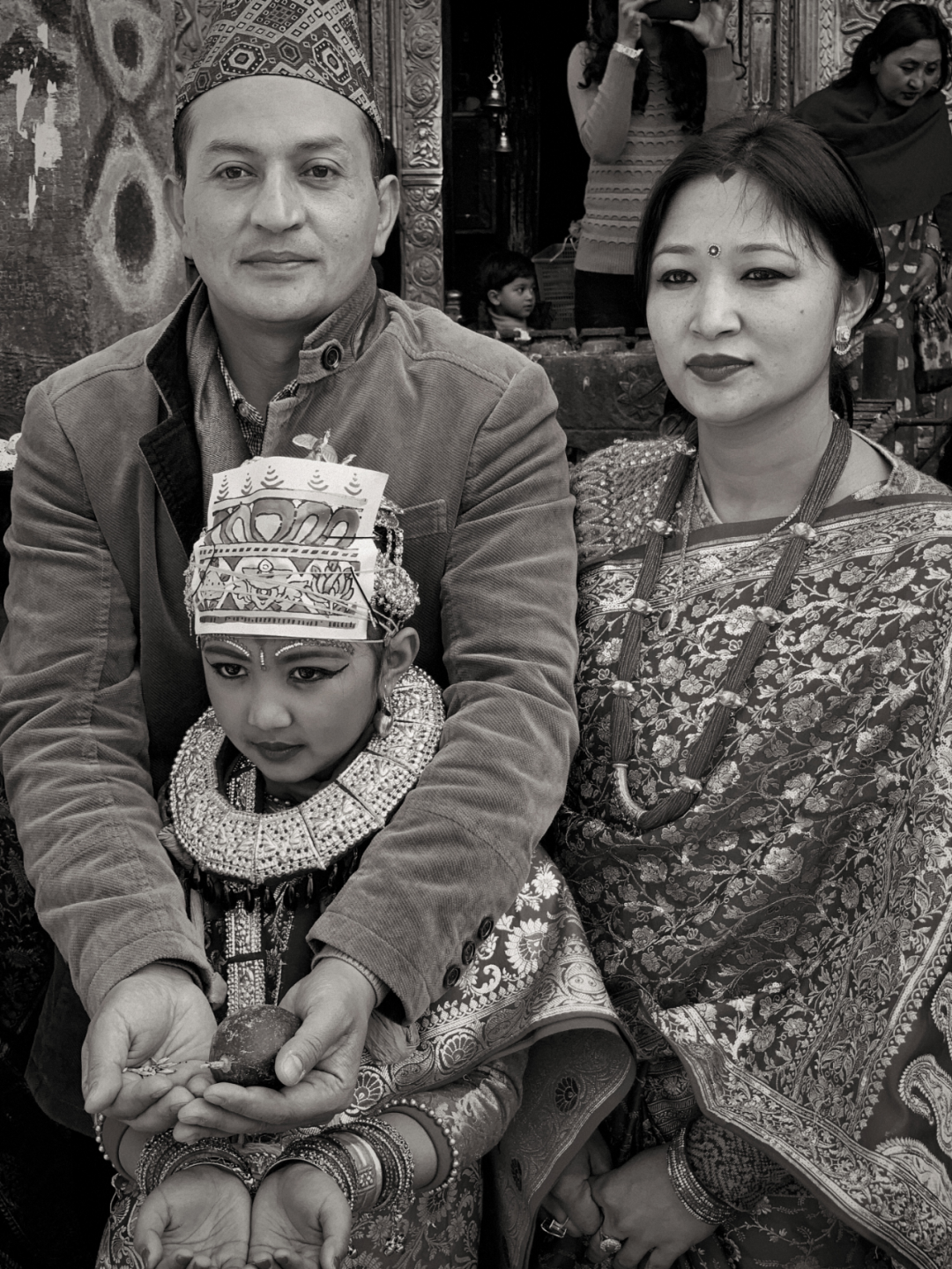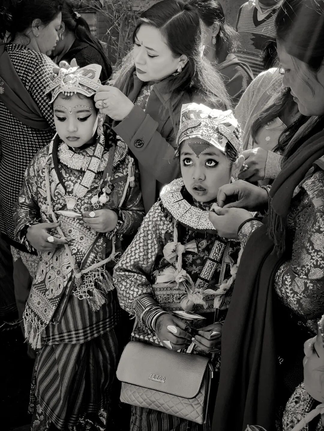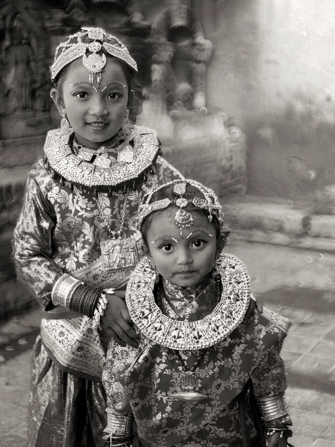 这两位尼瓦尔族小姑娘,没有参加集体的“贝尔果婚礼”,而是在自己家里操办同样的婚礼。
