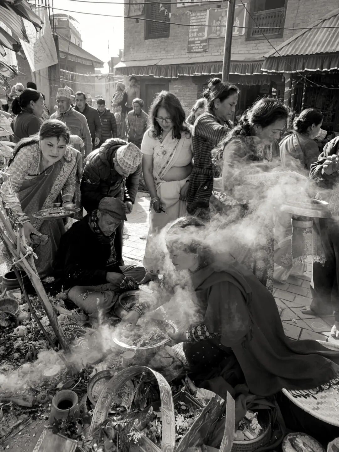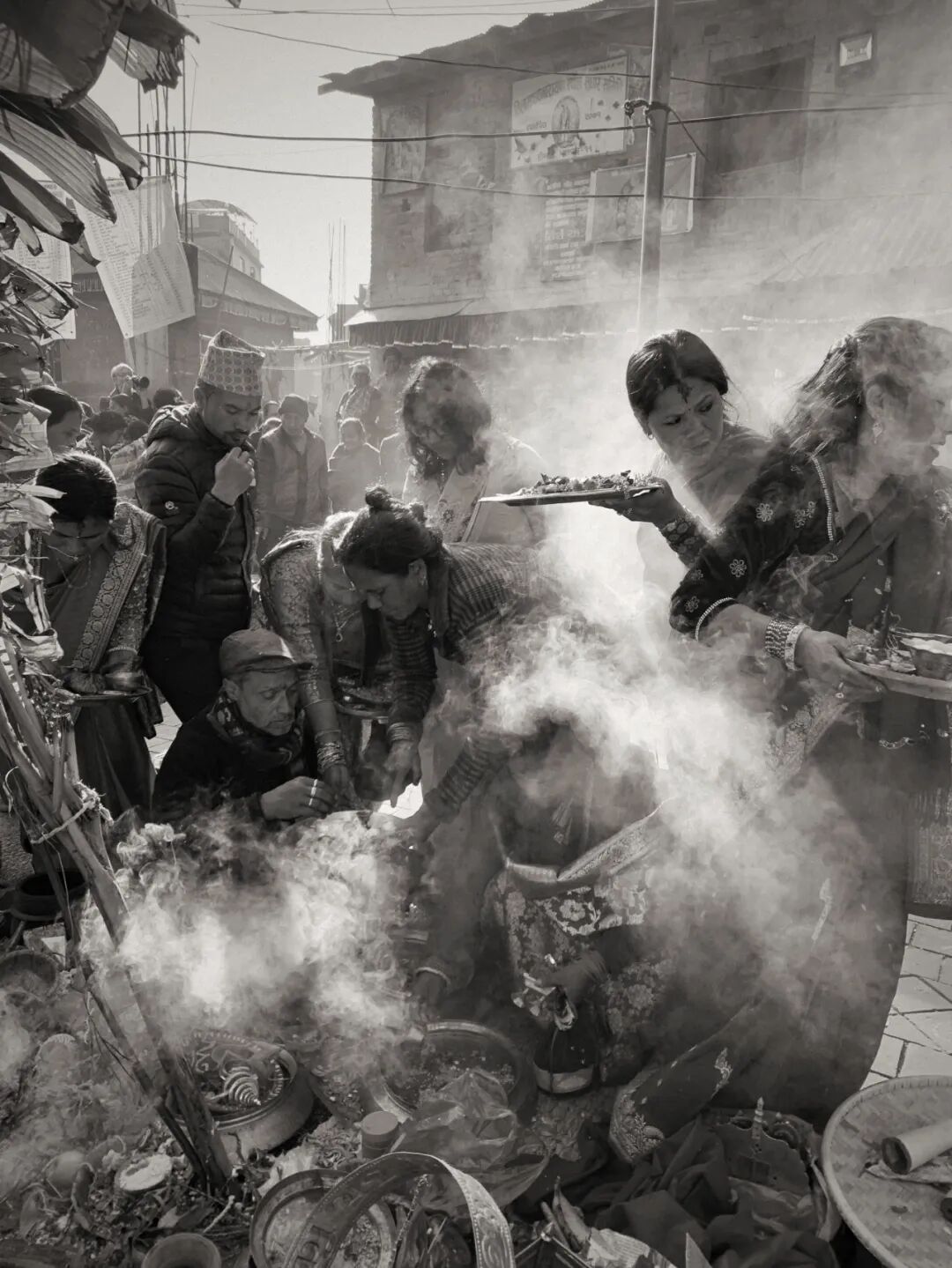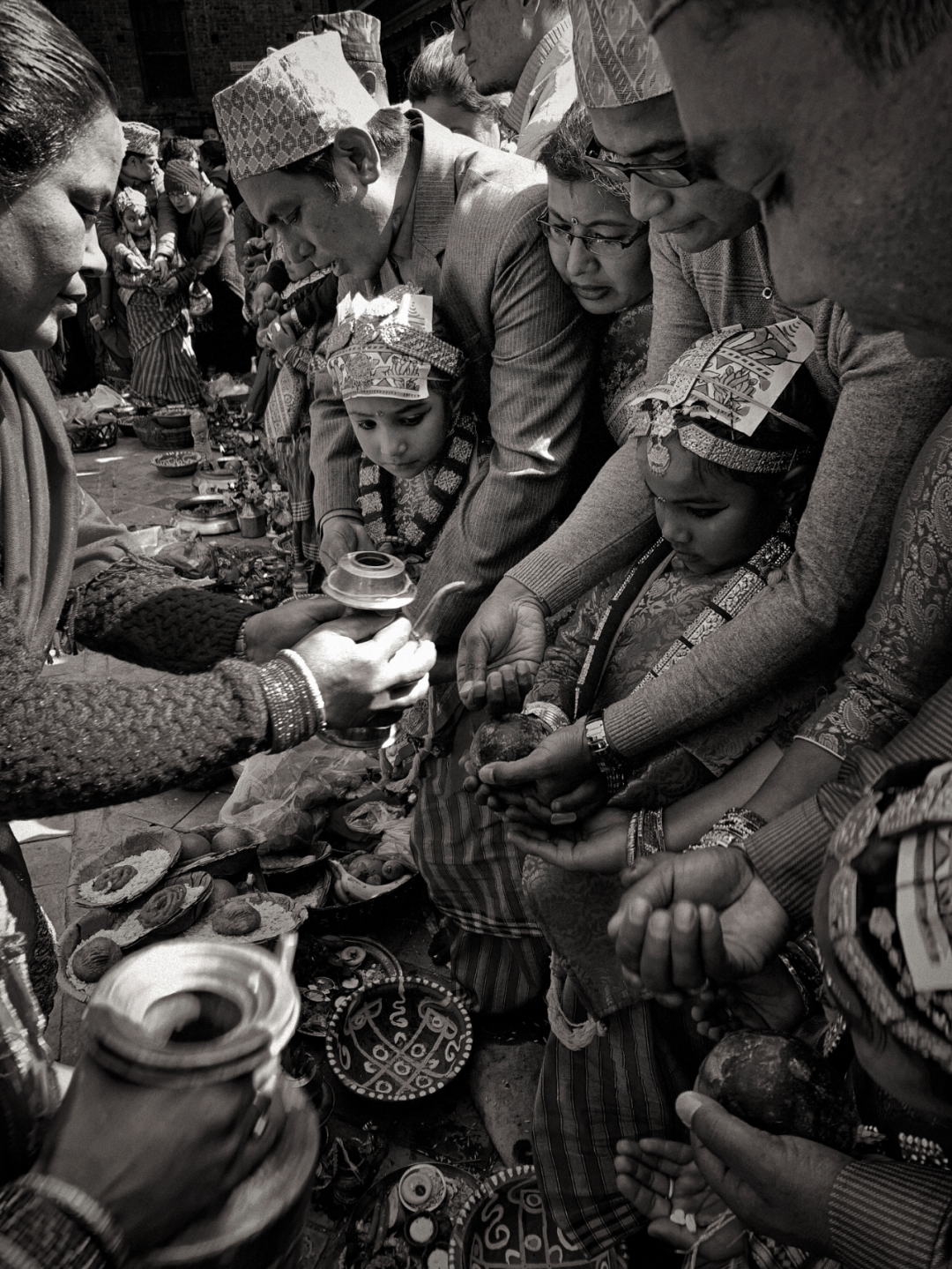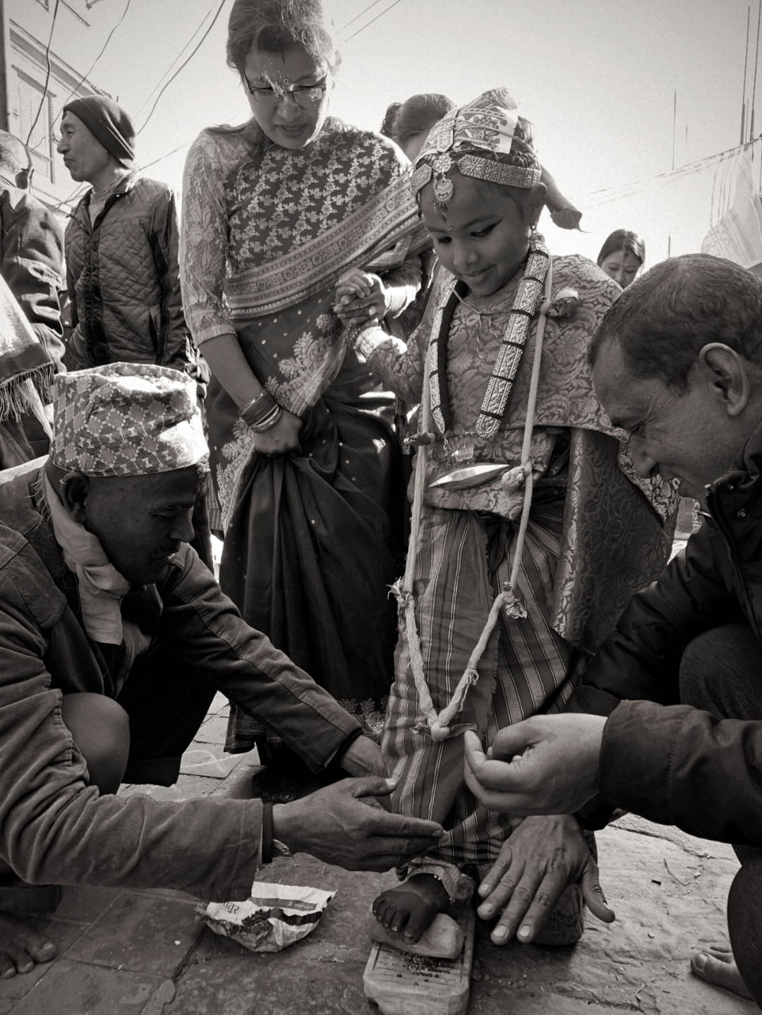 这两位尼瓦尔族小姑娘,没有参加集体的“贝尔果婚礼”,而是在自己家里操办同样的婚礼。