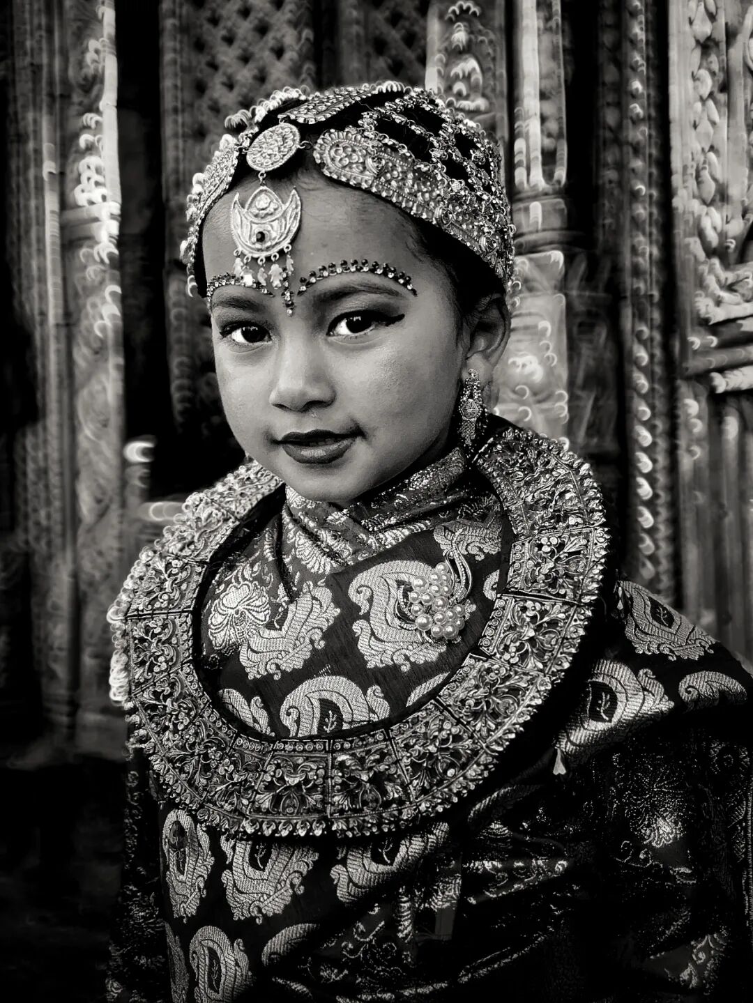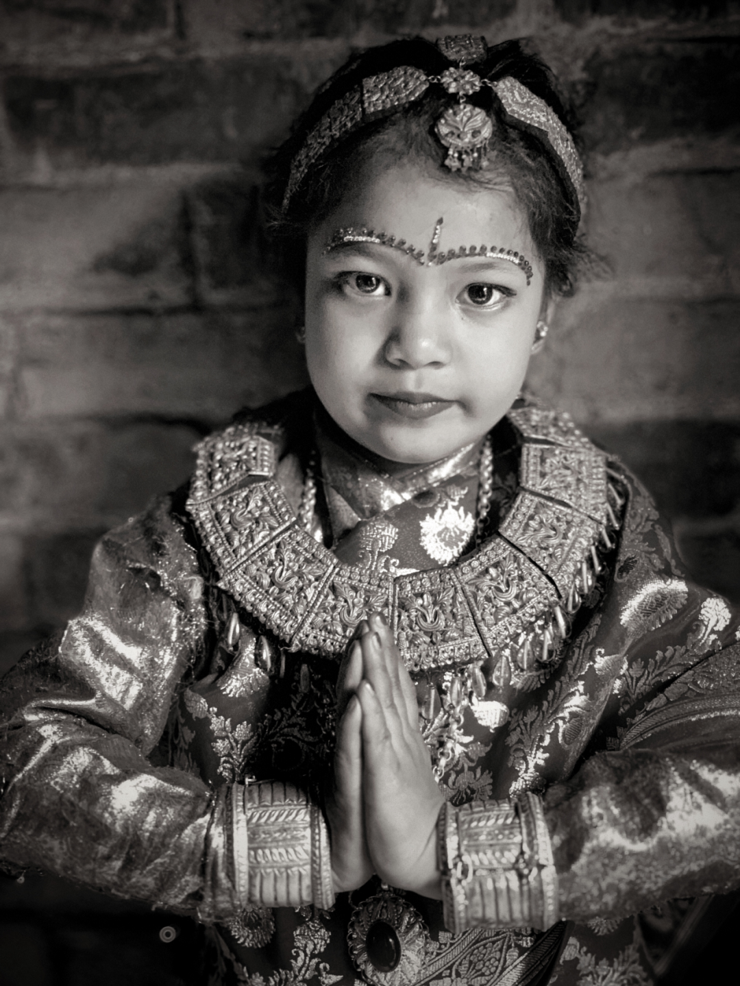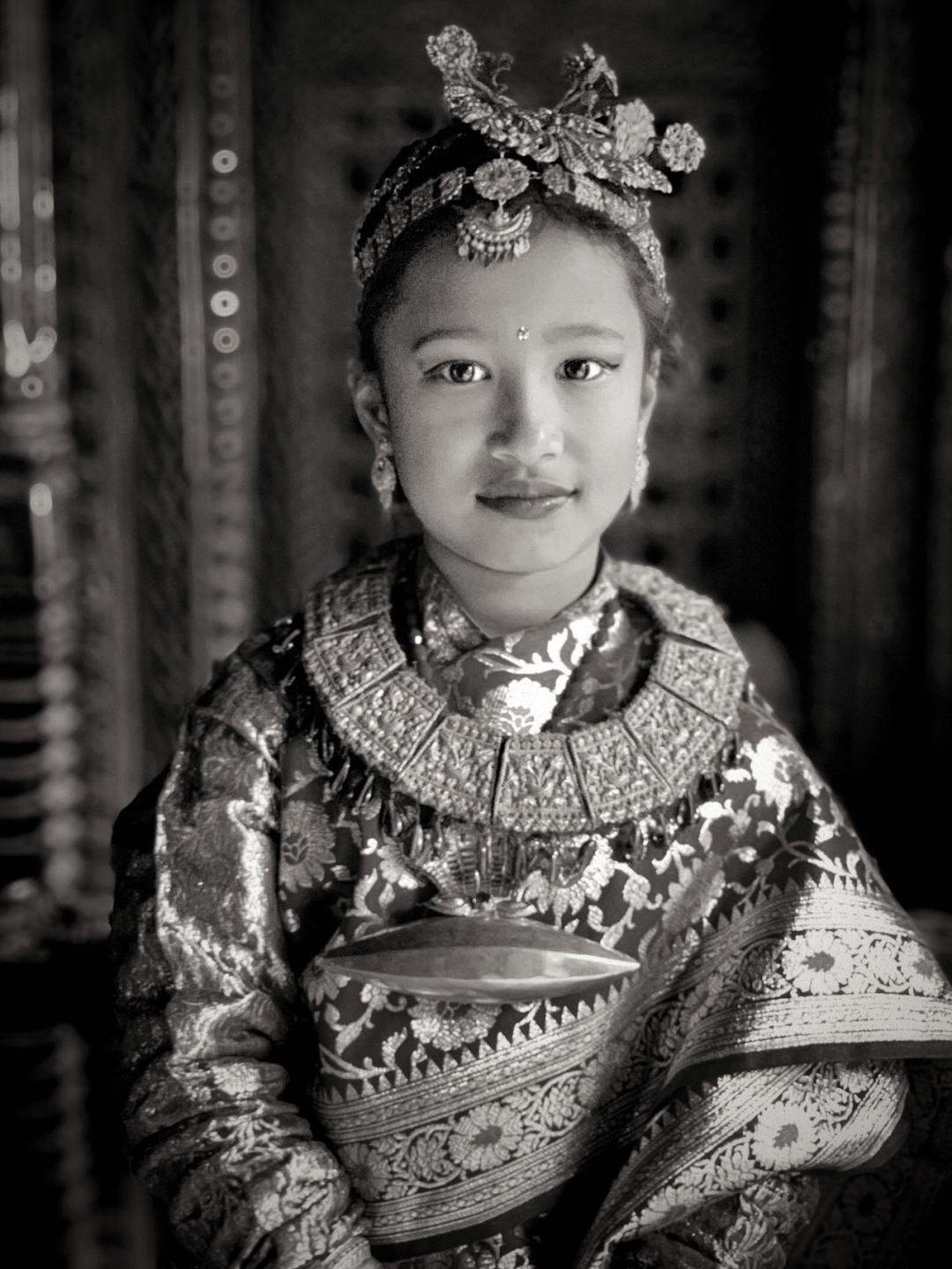 参加贝尔果婚礼,7-9岁尼泊尔尼瓦尔族的小新娘。人物肖像-8