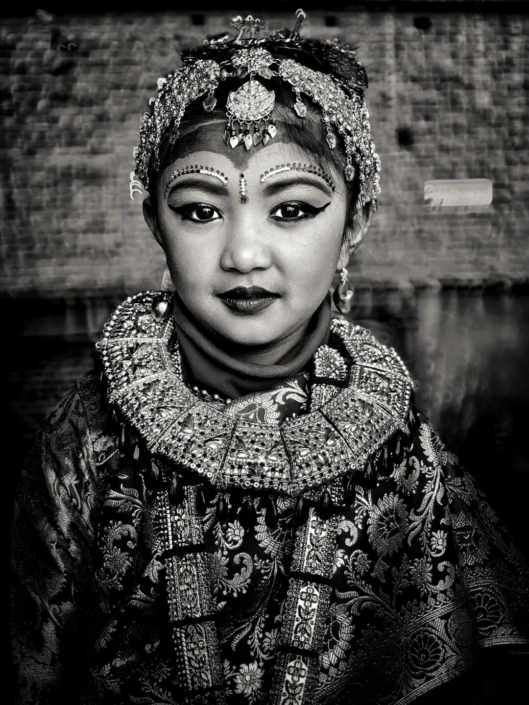 参加贝尔果婚礼,7-9岁尼泊尔尼瓦尔族的小新娘。人物肖像
