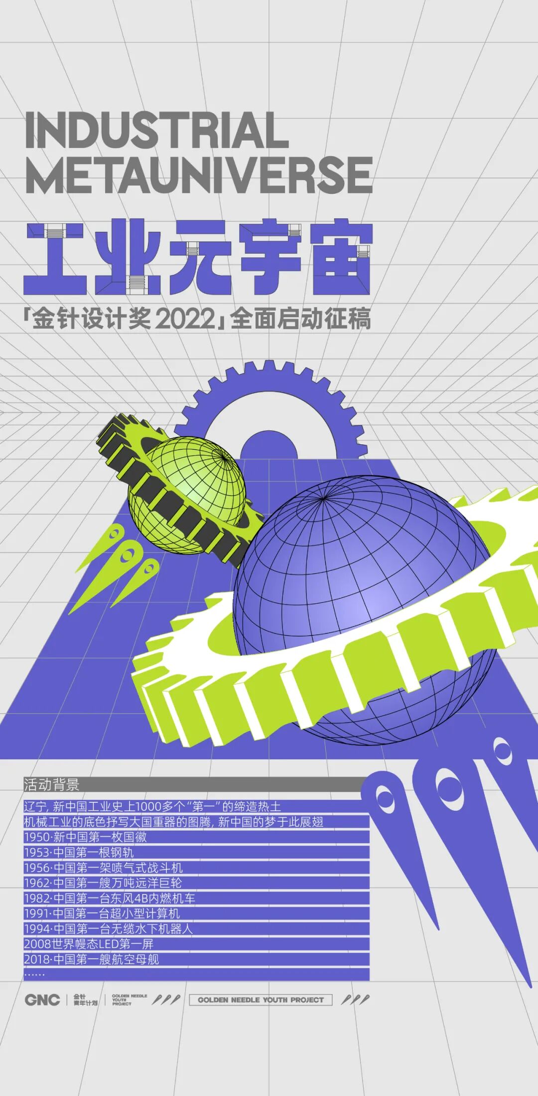 2022金针设计奖“工业元宇宙”设计创意大赛,暨「金针设计奖」是由辽宁省广告协会、东方设计奖组委会主办,中国设计师沙龙、奉天设计师沙龙、沈阳市广告协会、湖北省文化创意产业协会联合主办的一个面向青年设计师和高校设计专业学生的设计比赛。