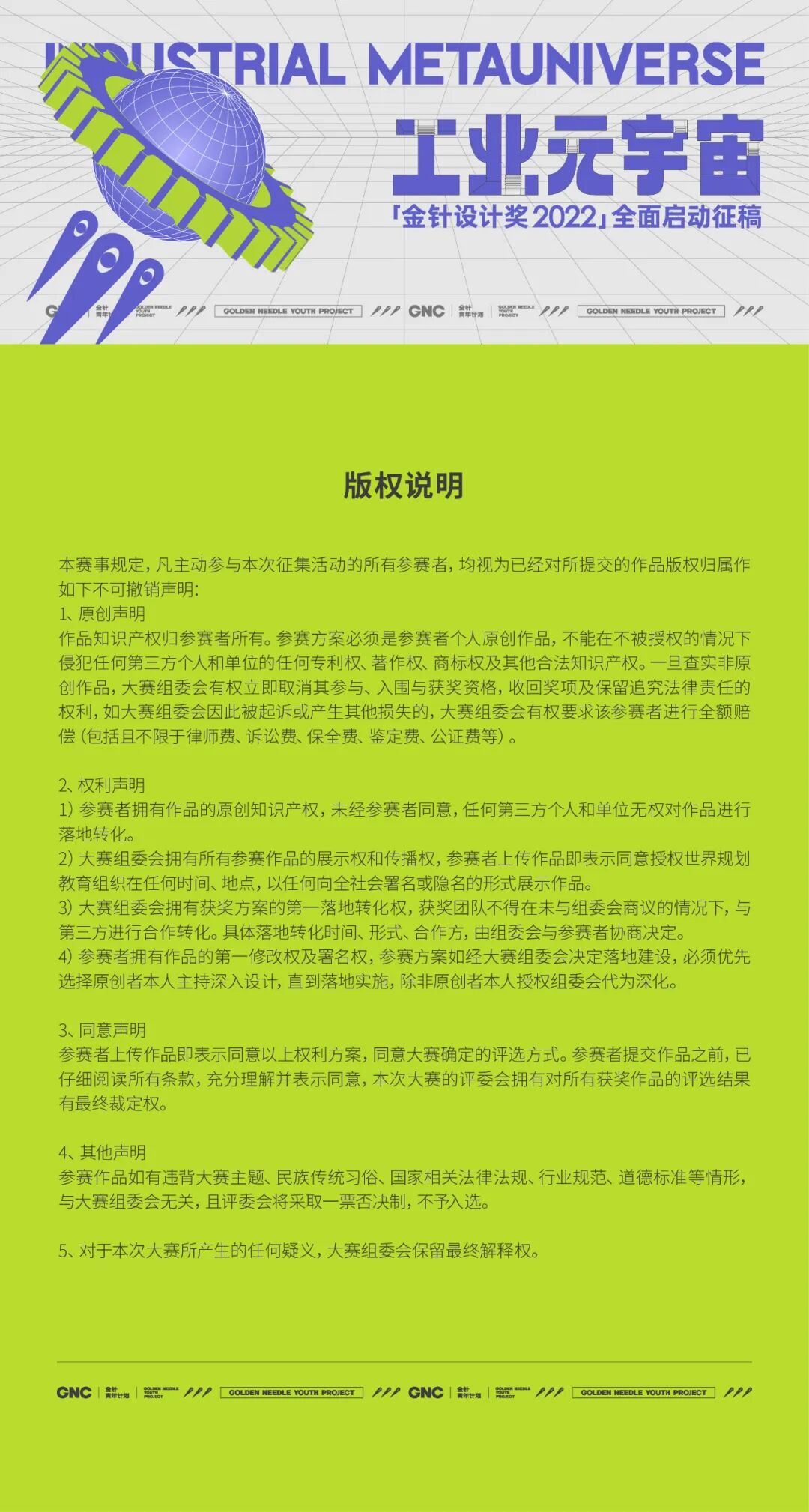 主题创意准确表达工业元宇宙内涵;从作品整体的合理性,美观度,细节,呈现方式等方面考量;从作品对概念理解、符号提炼、工程实现、推广应用等方面考量;作品受众群体及表现形式不限。