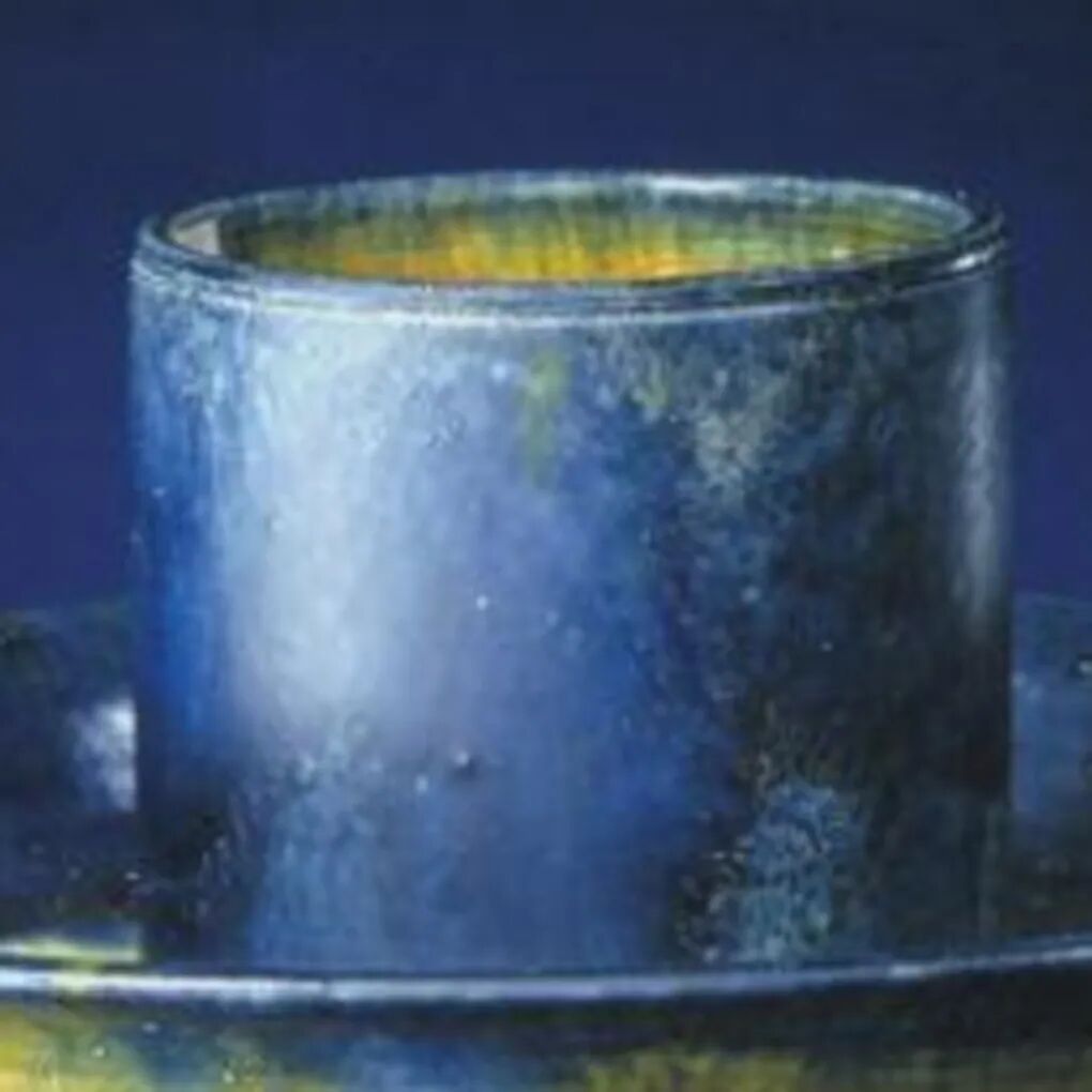 这件唐三彩烛台造型实用古朴,施釉均匀,色彩深沉雅致,又在三彩中点以蓝彩,更增添了器物的华贵韵致,是三彩器的上乘之作。