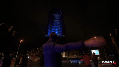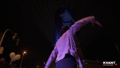 通过电钢琴及其音调,控制建筑物上灯光的运动,并通过捕捉我们的舞步,观众有机会自己互动,他们的舞蹈动作投射在建筑物的表面上,而其中交互式激光投影部分由KVANT制作。