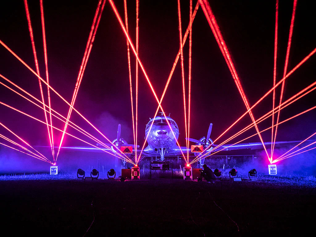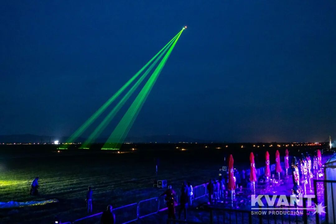 此次的秀场特意在地面安装了数台KVANT 科旺特Spectrum 30W彩色激光灯和20W彩色激光灯,除此之外还在飞机上安装了激光灯,让激光也能在空中舞动,这一独一无二的设计与航空主题相结合,震撼全场。