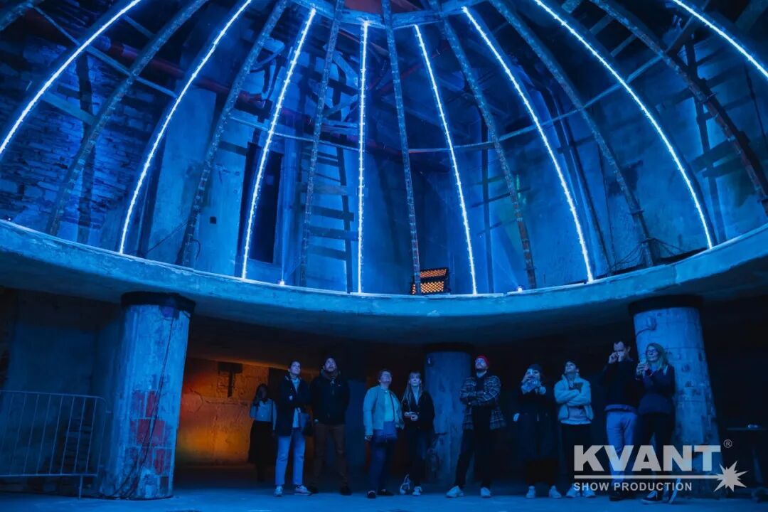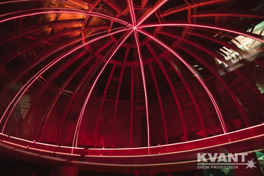 在“白夜”艺术节期间,设计师采用KVANT的激光配合灯光效果让现代科技与独特的穹顶建筑相结合,当游客看向天花板时,通过一系列千变万化的激光秀视觉效果让游客沉浸在内,会被带入一个与穹顶美丽建筑相融合的新维度。