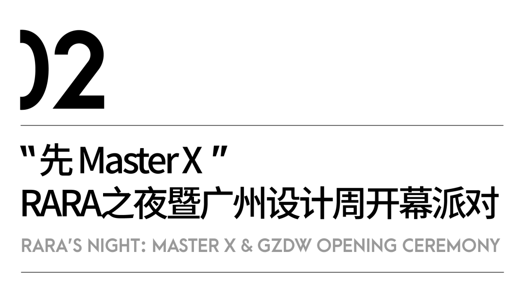 2021年12月9日, 广州设计周携手世界领先系统定制家居品牌RARA在新世代泛娱乐派对空间、对话世界的舞台——天德Space宇宙竞技场,联名举办一场行业创新的设计荣誉派对——“先Master X”RARA之夜暨广州设计周开幕派对。全广州独一无二的1500平方米超大空间,环绕式演唱会级别音响、机械臂般伸展开1000组灯光调节矩阵,仿佛一个深处宇宙深处的大舞台,伴随着欢快的墨西哥民谣,探索未来的“XIAN X”能量逐渐释放!