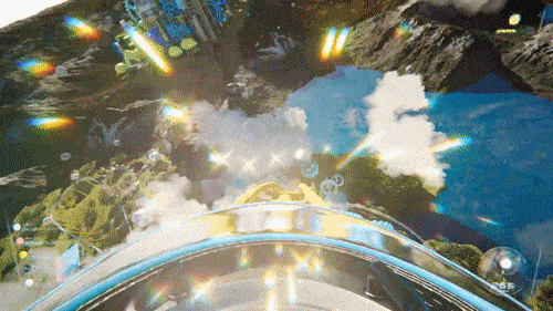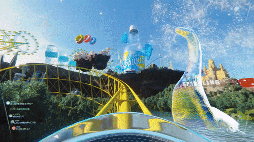 从海底穿出之后,过山车加速来到了最混乱的区域。轨道断裂,巨龙从云雾出现,引导者ARuFa借助柠檬的力量,击败了巨龙,气泡水乐园恢复了往日的晴朗。