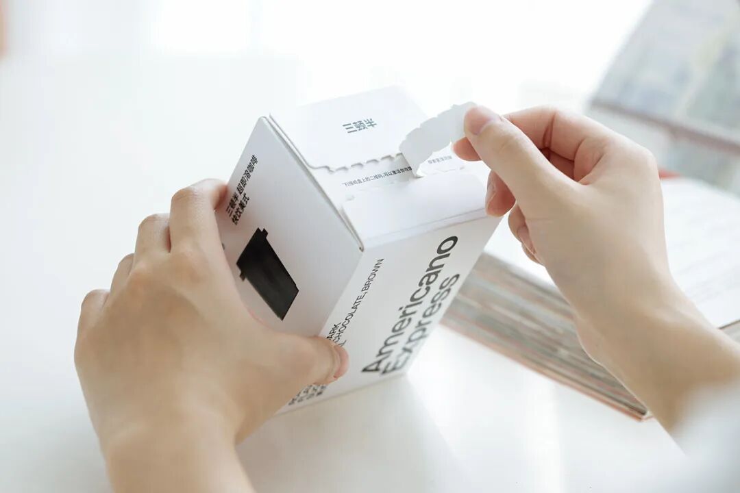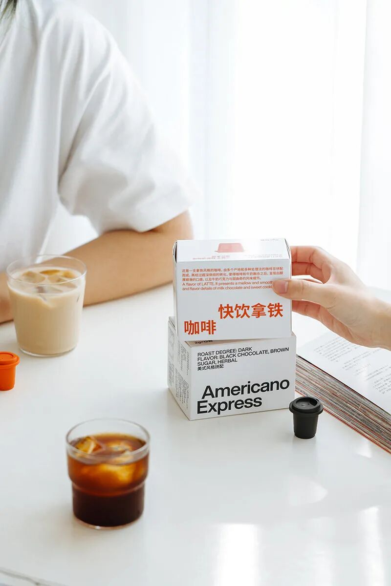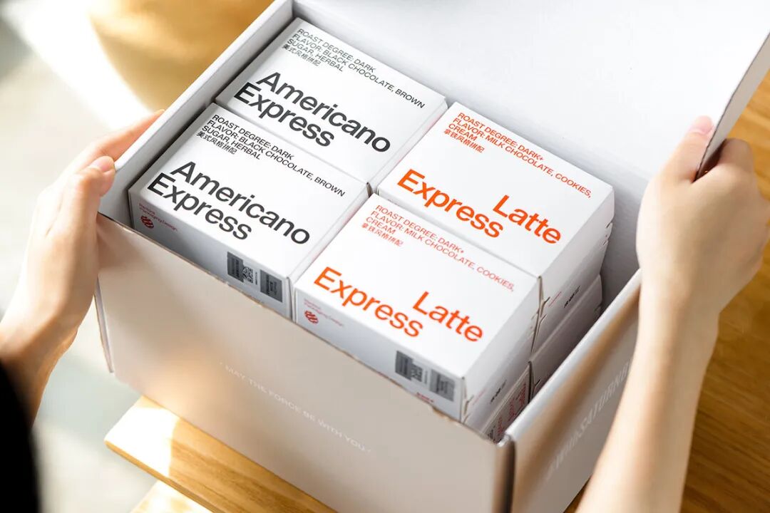 今天来分享三顿半的新快饮系列,包装以全文字的形式进行排版,黑、红两种色调用来区分口味,同时错落有致的文字布局,重点突出、主次分明,简约中又极具高级感。
