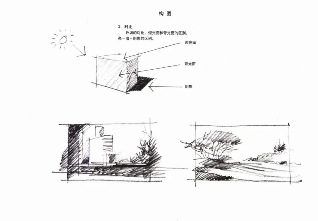 3、对比:色调的对比,迎光面和背光面的区别,亮-暗-阴影的区别。