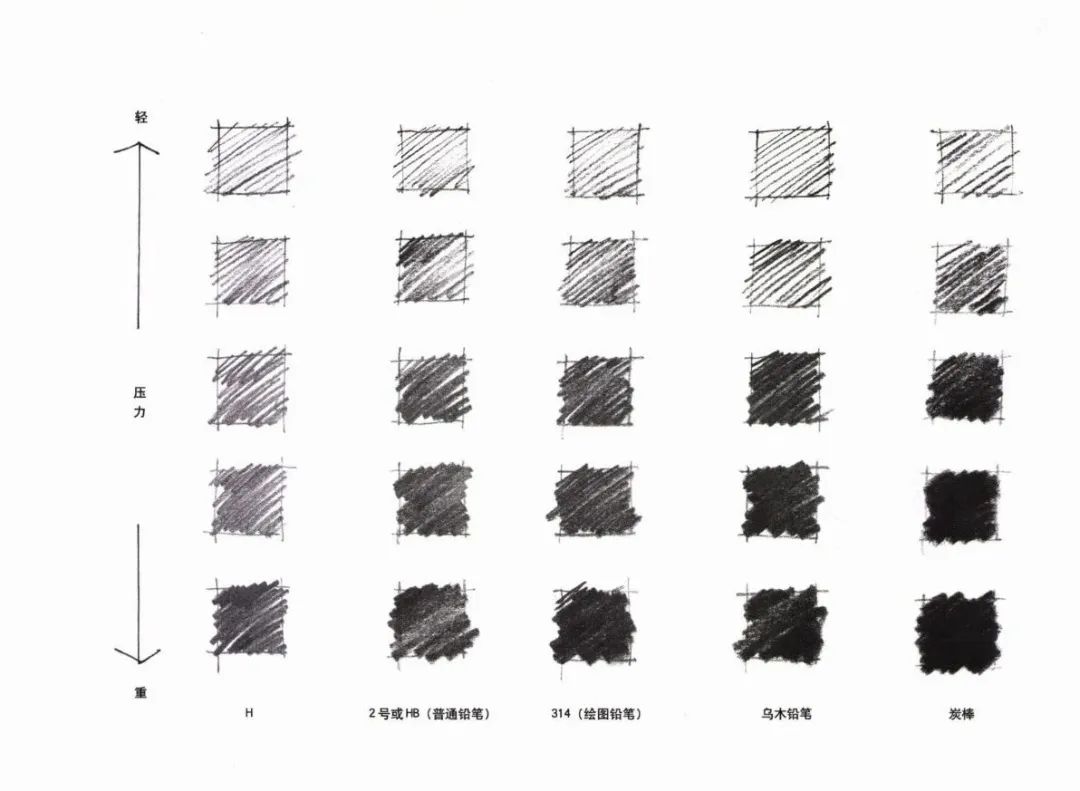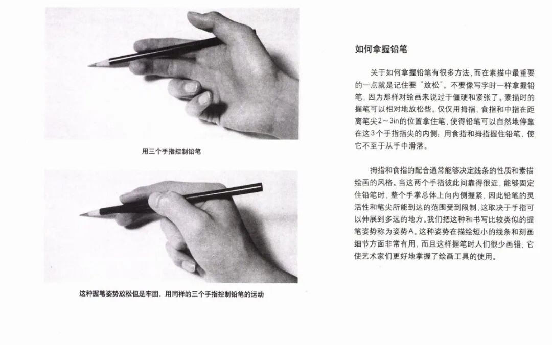 从根本上来讲,手部的运动和素描的表现相对应,三种拿笔的姿势直接对应于三种不同的手部运动。