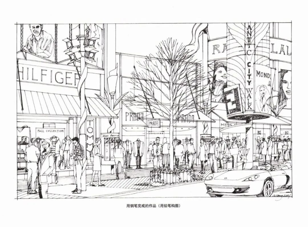 都市风景中建筑物趋于主宰地位,但是建筑物之间的空间却是所有里面最引人入胜的地方。除了风格各异的建筑物之外,一些街道设施诸如街灯、标识、遮阳篷、店面以及橱窗等等都促进了丰高多彩的街道生活,这种多维的空间是很理想的,因为它具备了成就一幅优秀素描画的所有必要条件。