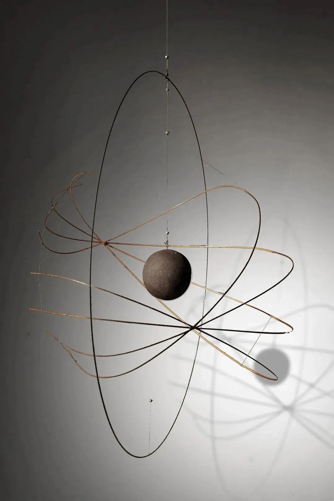 Laurent Martin “Lo”《Inside》 台湾烟熏竹、Tiatan编织线、导线、陶瓷球、钢环 54×54×40 cm,旋转直径 54 cm 2022 图片由艺术家及10号赞善里画廊提供