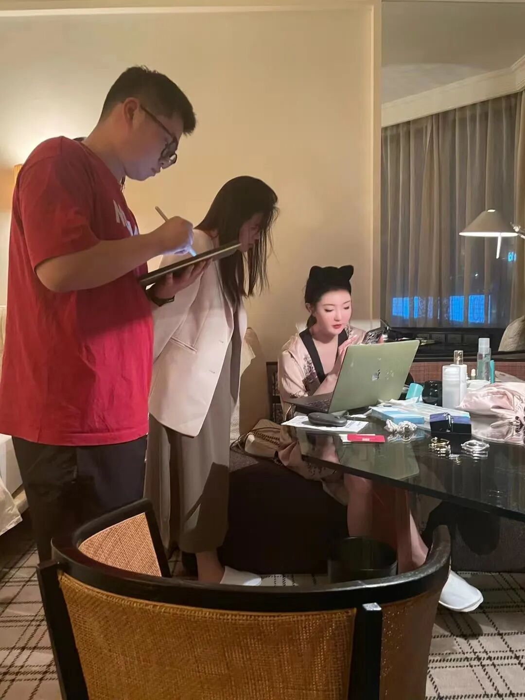 相信大家可以从想爷社牛的合照姿态察觉出一丝不对劲:向来娇羞拘谨的她怎么会在第一次见面就同甲方勾肩搭背?🤔