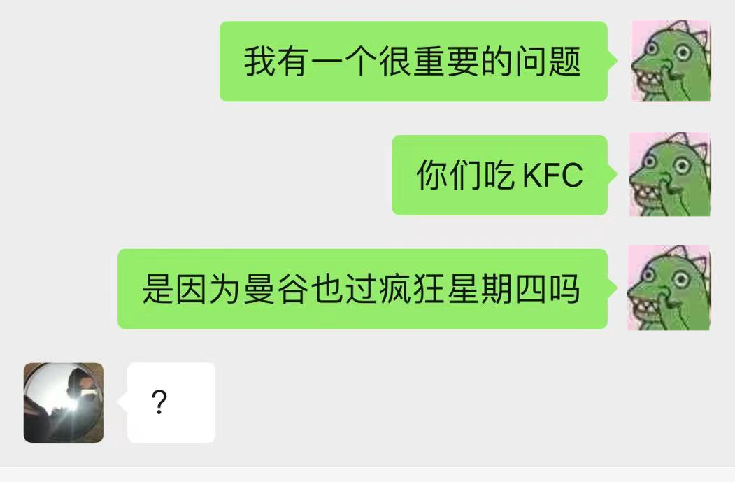 希望设计师回国后能告诉我,曼谷到底有没有疯狂星期四的活动,这对我来说真的很重要。