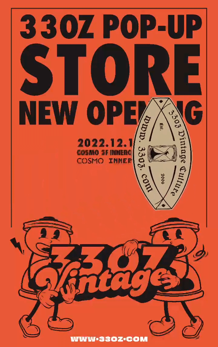 如今离 33oz Vintage Shop 线下旗舰店的正式开幕还有一段日子,在此期间,我们将以 33oz POP-UP STORE 的方式,继续为各位分享生活方式,提供相关服务。