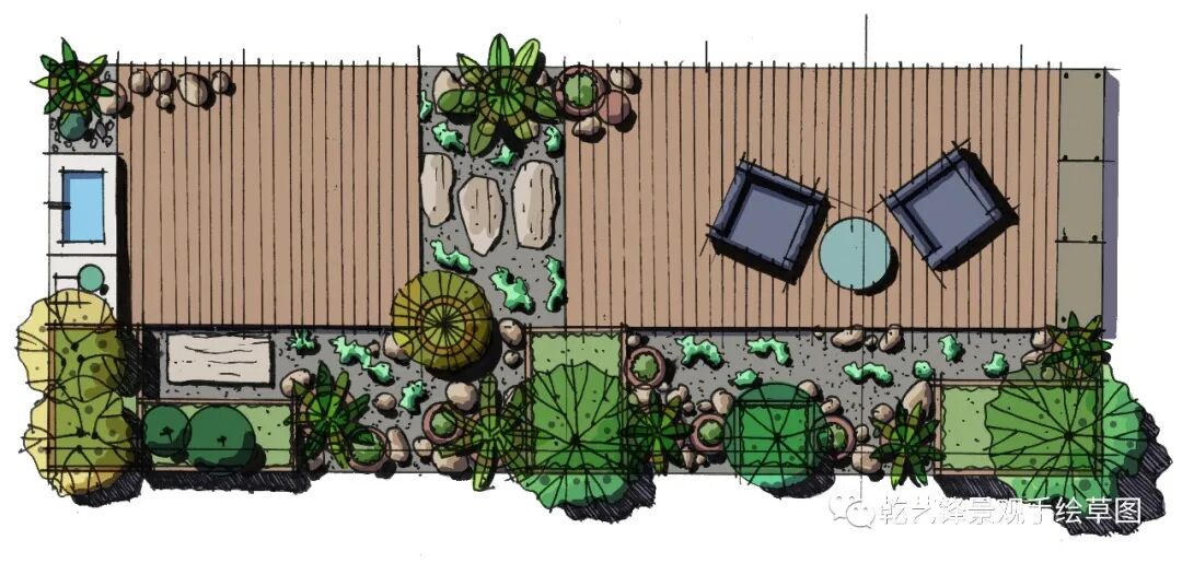 /三天,做2个露台花园设计 | 分享手绘方案构思过程。