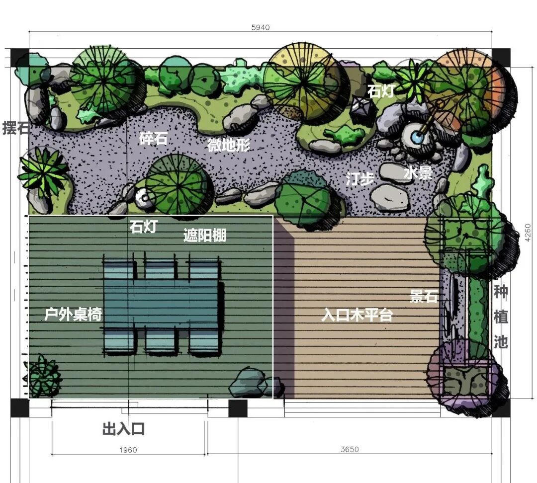 三天,做2个露台花园设计 | 分享手绘方案构思过程。