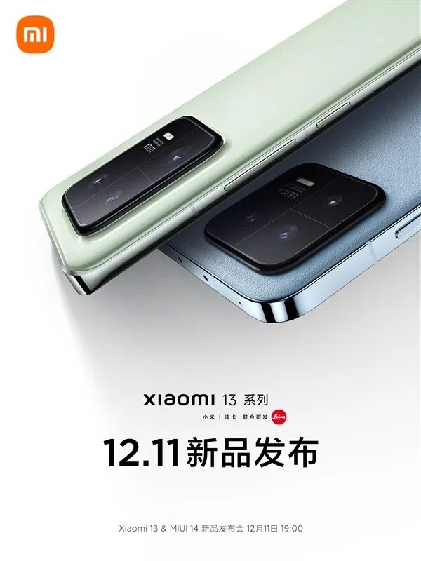 · 小米 13 系列发布会重新定档:12 月 11 日周日见