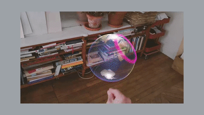 第五个场景中,用户置身于一张迷你地图中心,当用户输入“咳嗽”语音指令时,病毒颗粒会以小点的形式出现,并在空气中传播。用户可以在真实环境中走动以查看病毒传播路径以及速度。