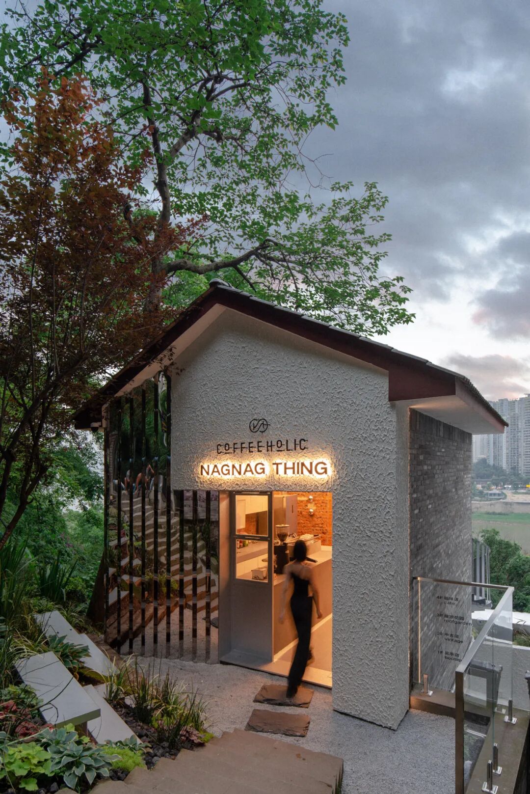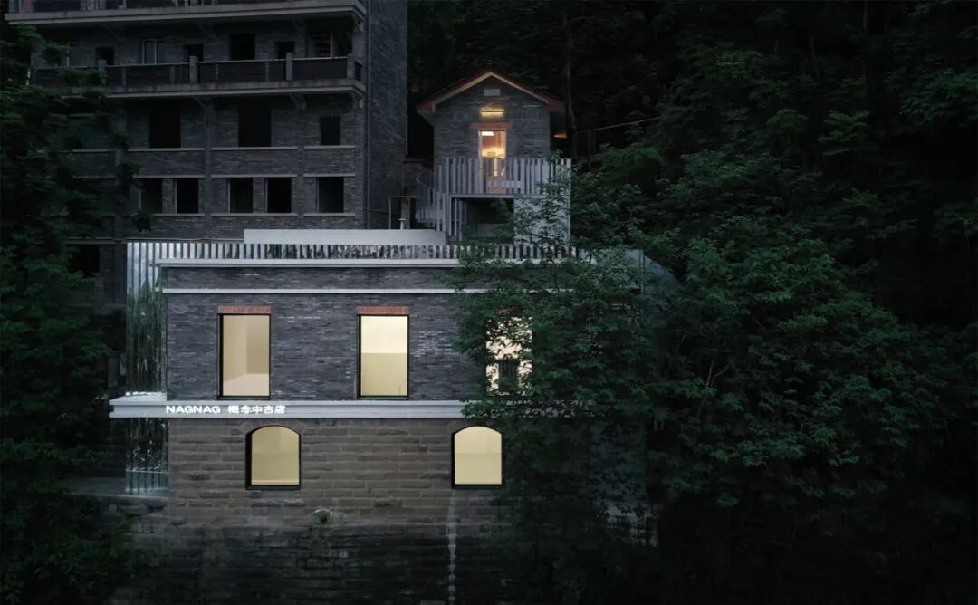NAGNAG那个中古集合店位于重庆李子坝景区的一处山上,包括咖啡馆和中古店、买⼿店三个业态。