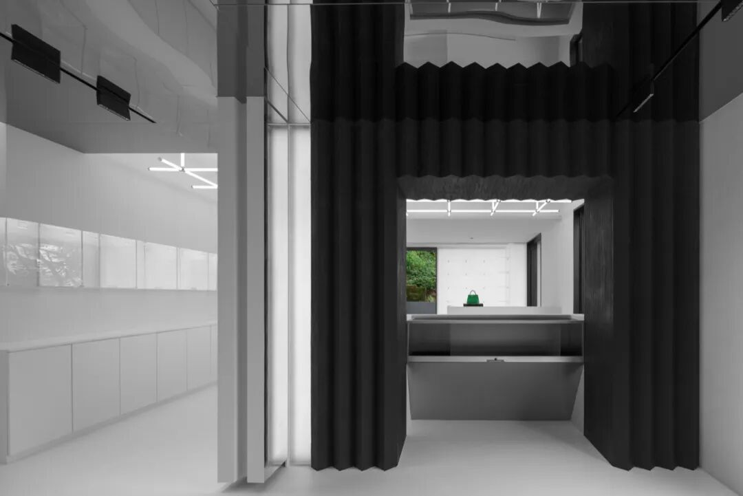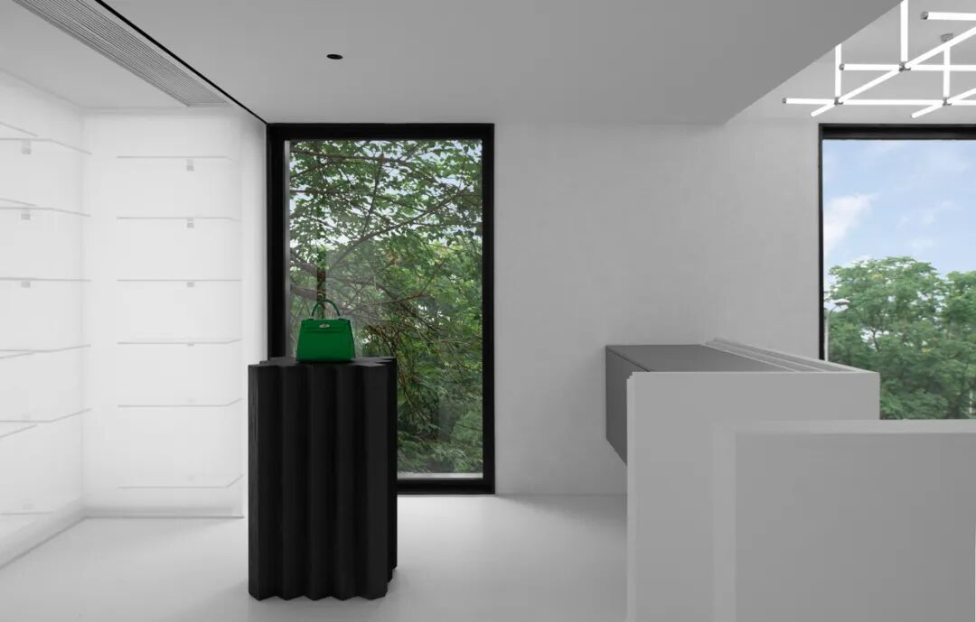 室内方面并非将空间定义为一个单纯贩卖二手奢侈品的场所,而是希望其成为一个不仅向小众玩家开放,同时也是向大家讲述中古文化的美术馆。通过空间景深的营造给与原本局促的室内开敞丰富的观展体验,以当代简约的方式向人们讲述中古文化背后的故事。