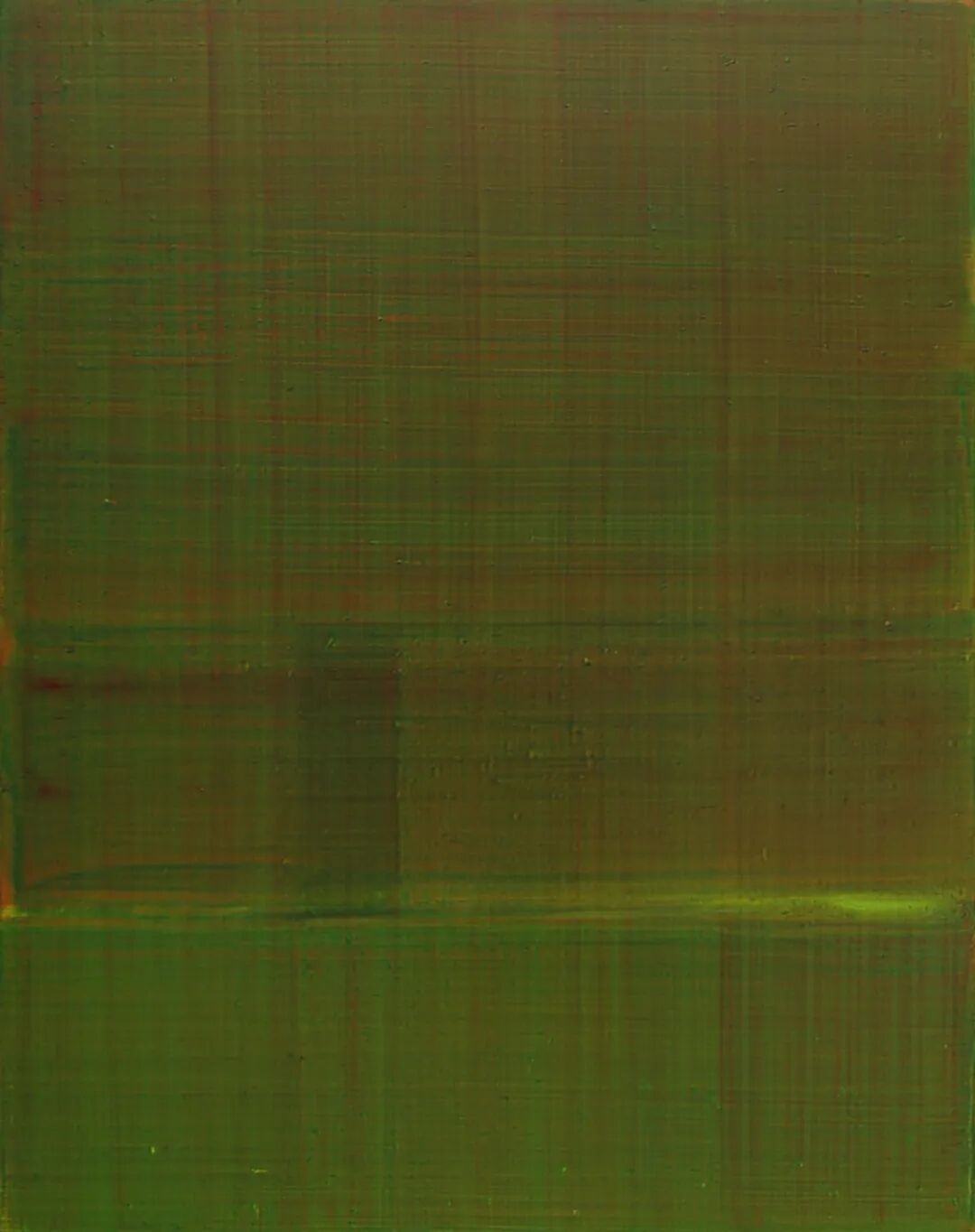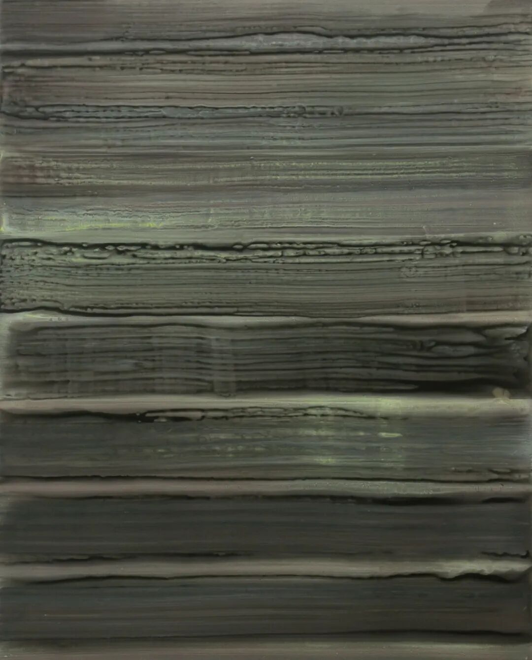 三泽浩二就选择不断地重复,将那些无味的动作轨迹转换成了艺术。他的画就是一个不断重复之前动作的表现,他说:“自己的画就好像竹帘在纸浆中晃动的过程。”见到他的画,确实能想象他的绘画过程:填饱颜料的画笔在画布上顺着一个方向连续、一层又一层不停叠加,轻薄的颜色重复堆叠,不使用调色盘,让颜色在画布上融合,底层的颜色透过上层的颜色,让画面变得更加有层次感。