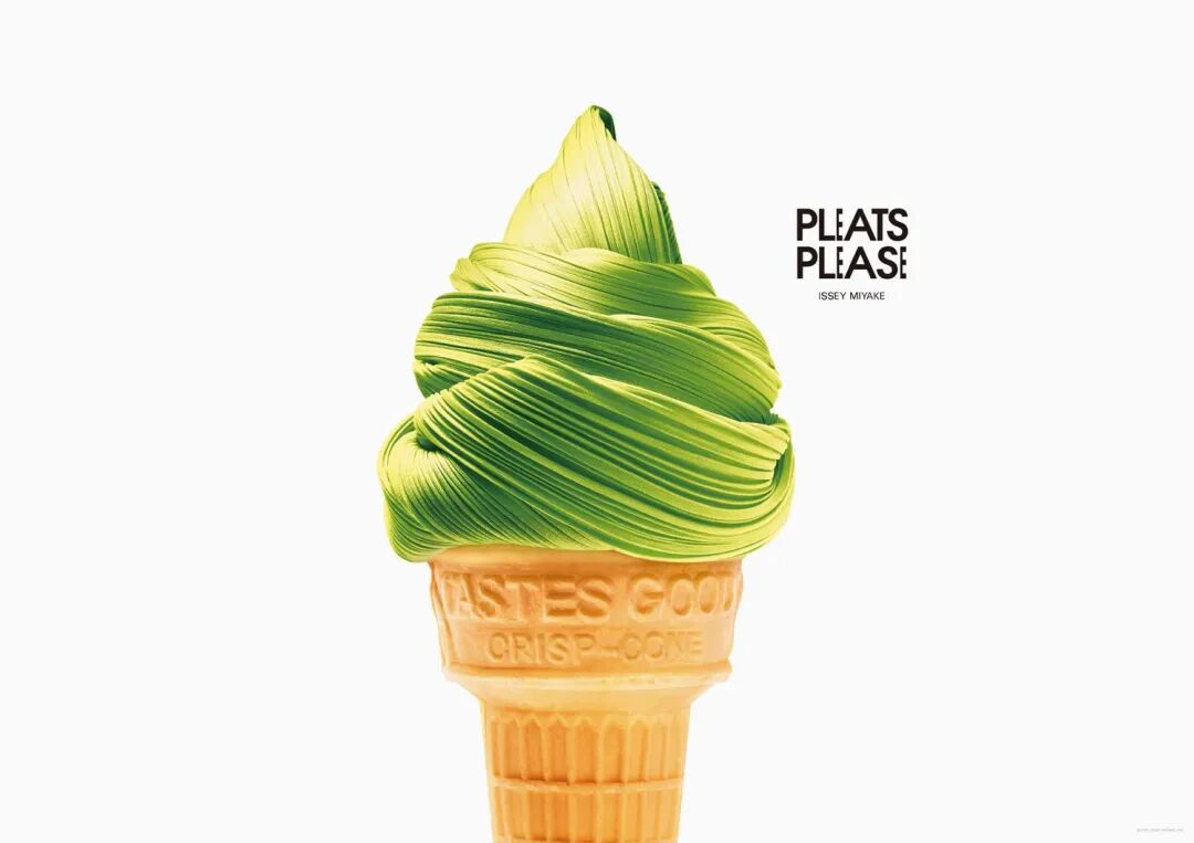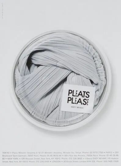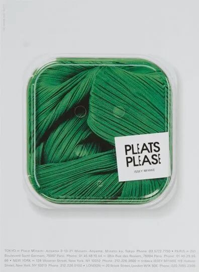 这样褶皱的一块布,还被设计成海报效果,来看看佐藤卓为三宅一生副品牌PLEATS PLEASE设计的品牌海报,你感相信这是十年前的海报了,现在看来依然新潮创意满满!