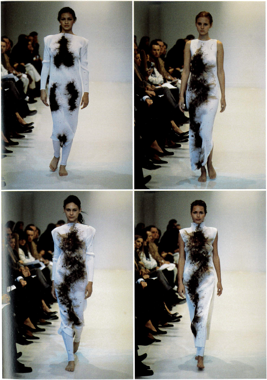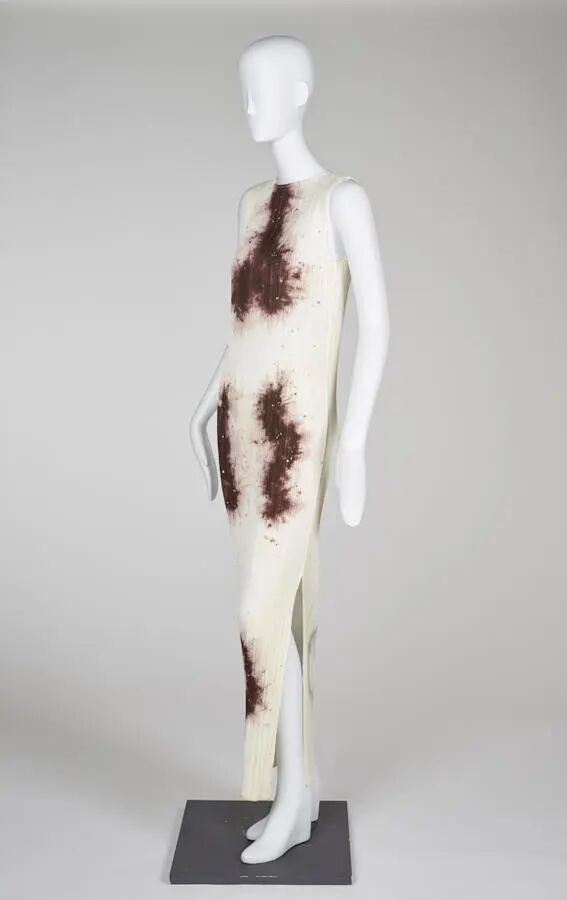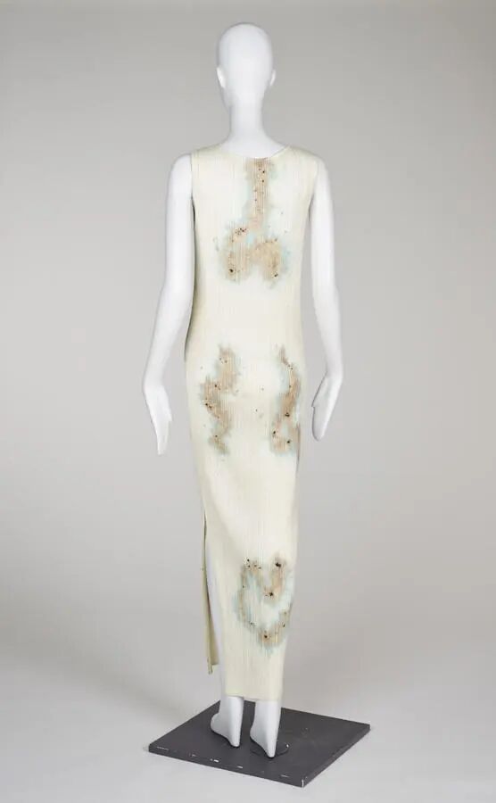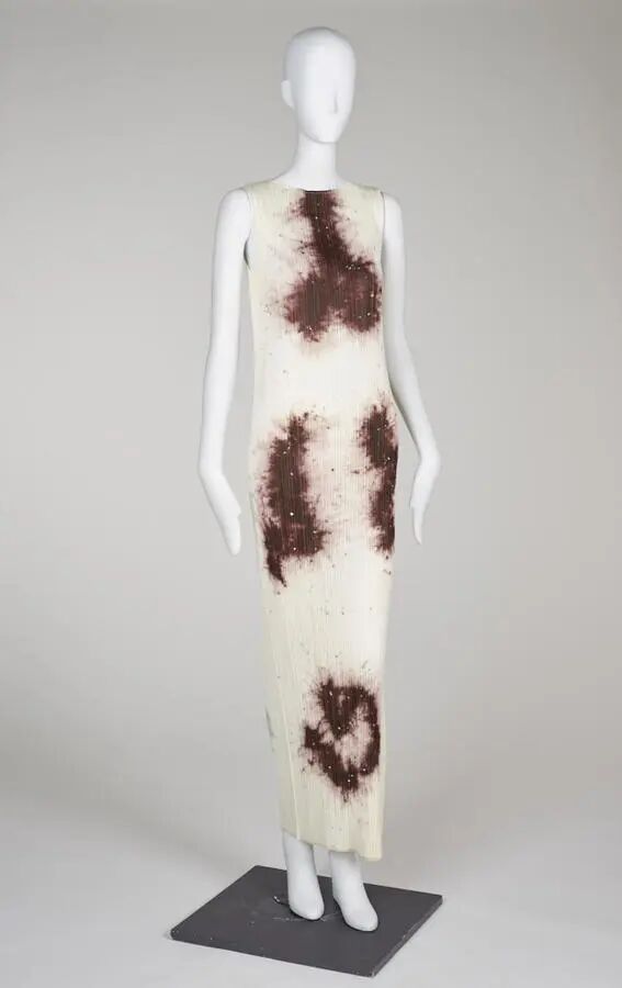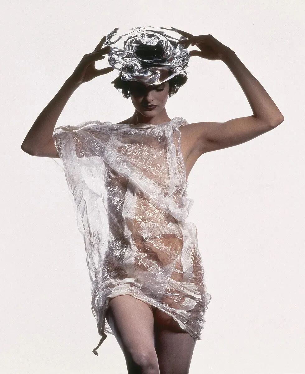 Tina Chow有一次穿着Issey Miyake的裙子去参加一个派对。由于不想弄脏裙子,她灵机一动把裙子脱下来拧成一捆项链,戴在脖子上去舞池里转了一夜。这样就要讲到三宅一生先生的另一个宝贵的发明:Pleats,褶皱。